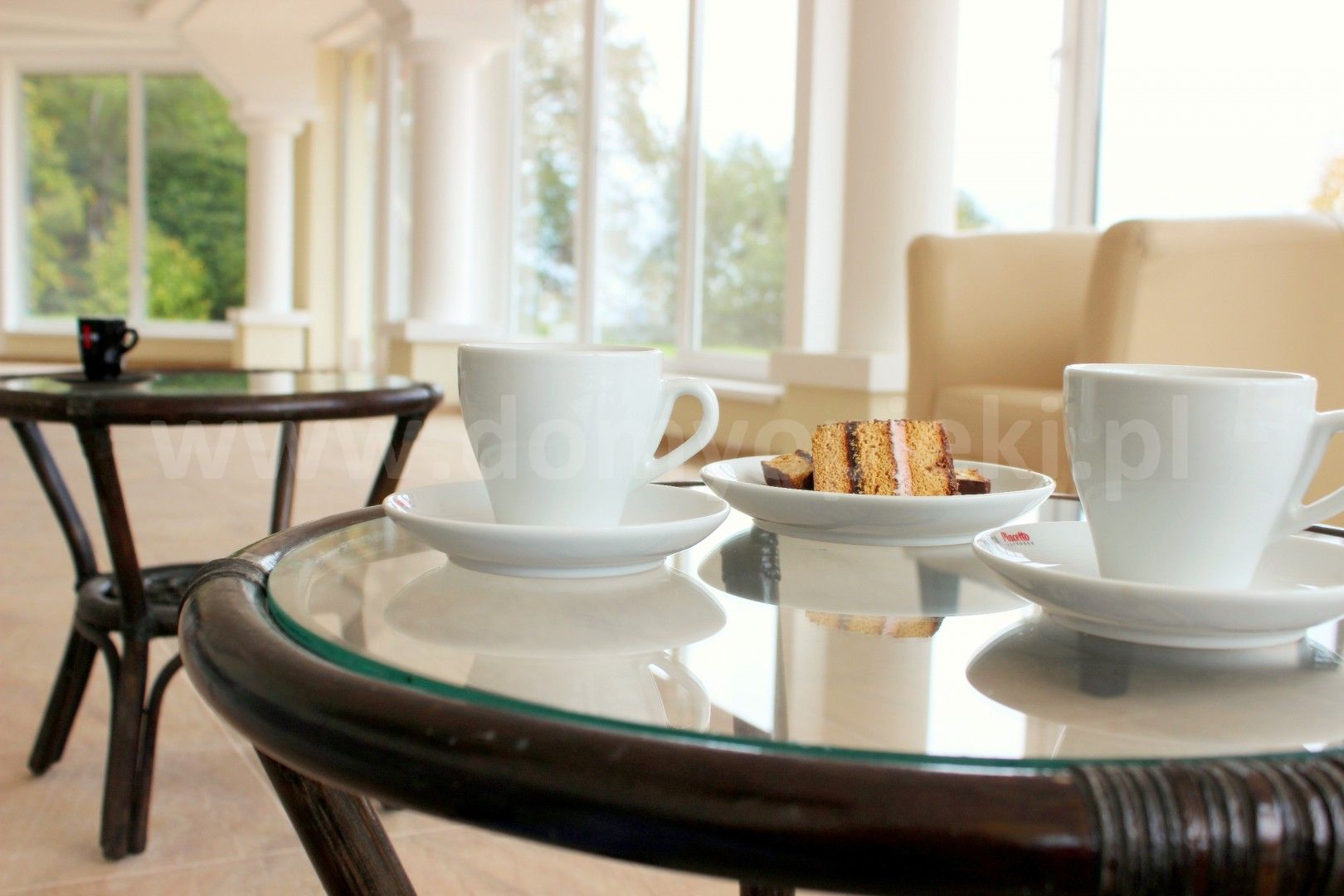 W budynku znajdują się też pomieszczenia wspólne, takie jak sala rehabilitacyjna, kaplica, biblioteka, kuchnia. Niezwykle przytulnie wygląda usytuowana na parterze jadalnia z kominkiem. Obok znajduje się pokój rekreacyjny - połączony z ogrodem zimowym sprawia wrażenie otwartej przestrzeni wypełnionej światłem i zielenią. Te główne pomieszczenia wspólne znajdują się w zasięgu wzroku personelu, który może na bieżąco monitorować samopoczucie mieszkańców.