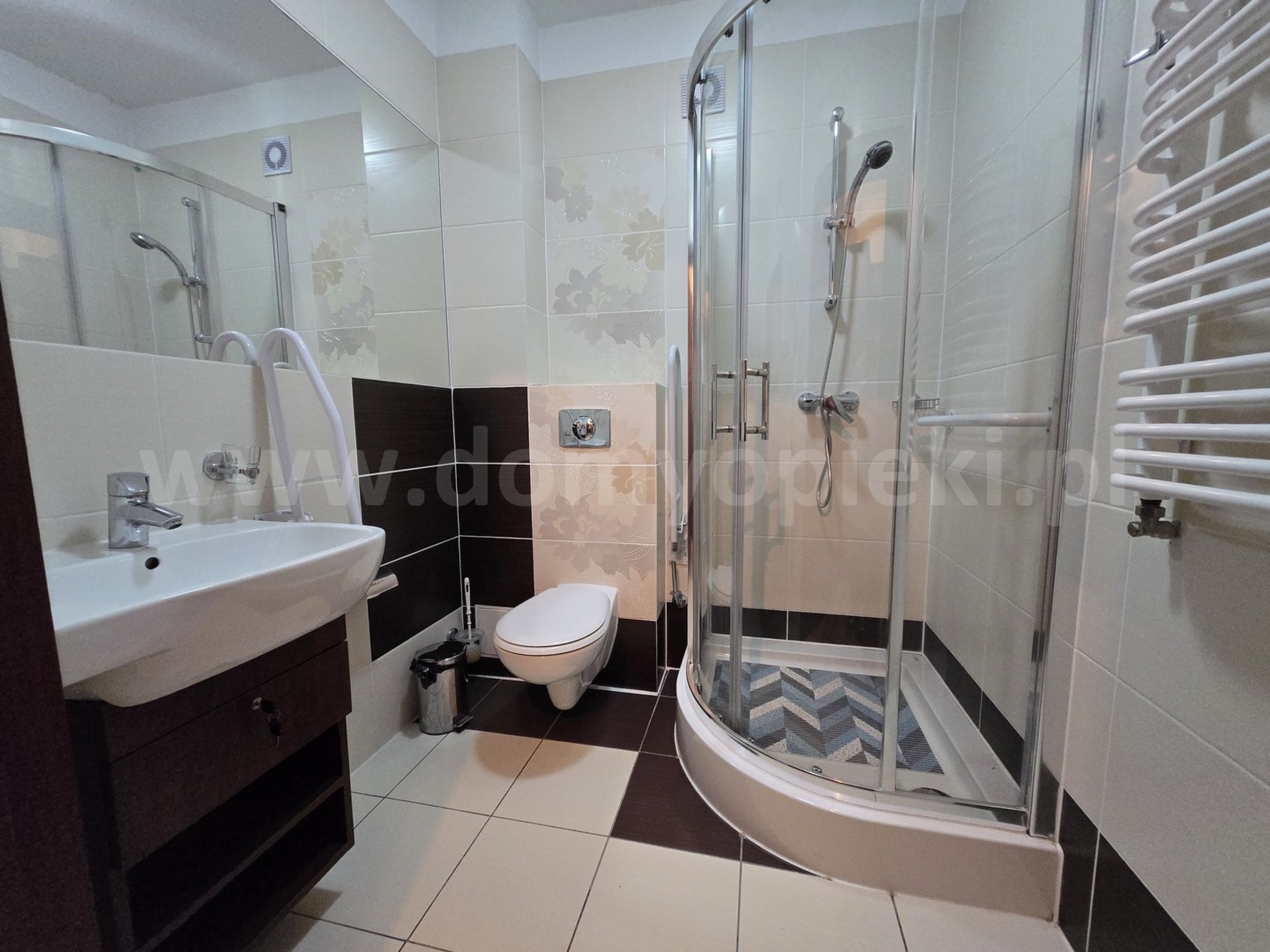 w pokojach z łazienkami. Do dyspozycji pensjonariuszy jest przestrzenny hall wraz z miejscem dziennego pobytu, gdzie można miło spędzać czas na wspólnych