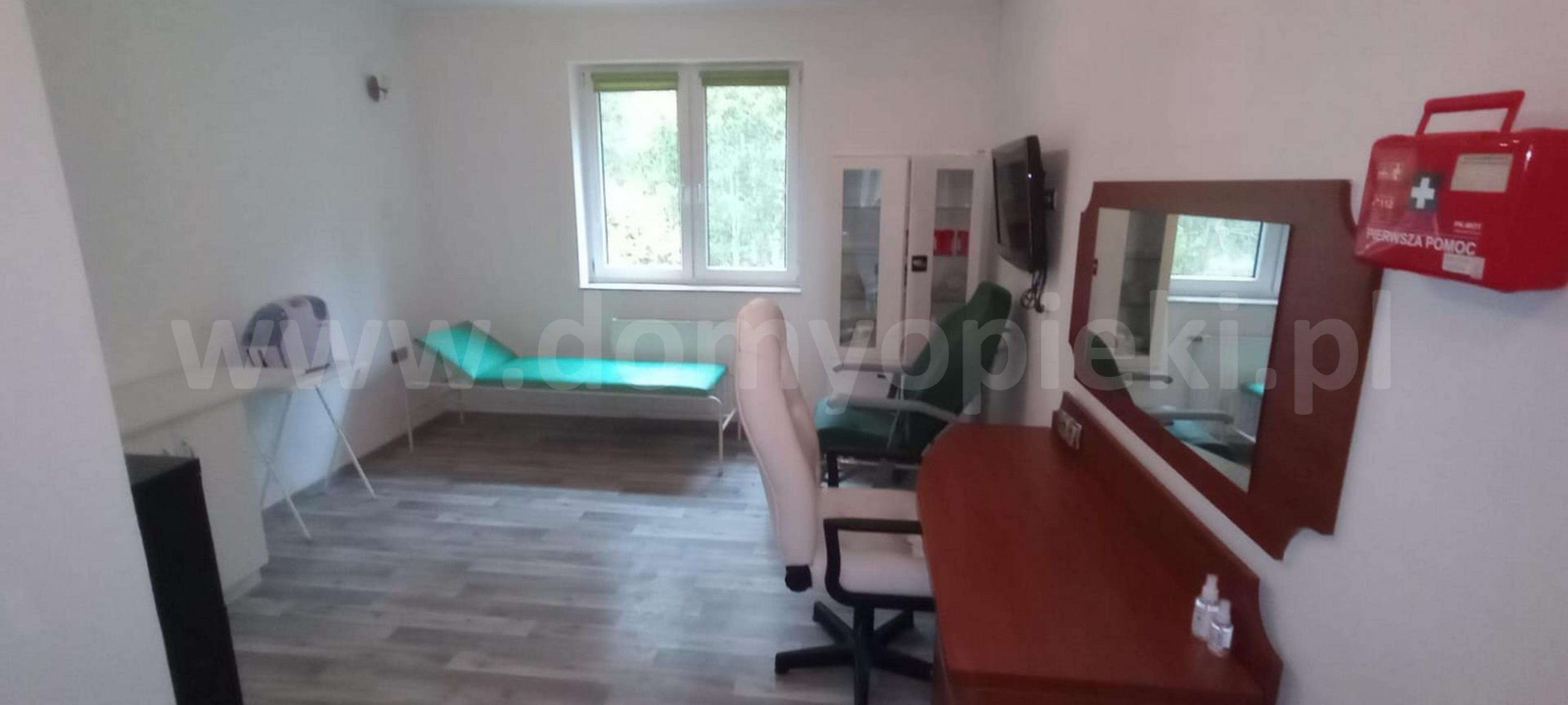 Placówka zapewnia opiekę całodobową z pomocą pielęgnacyjną, konsultacje lekarza według potrzeb oraz dostęp do rehabilitacji i terapii wspierającej funkcjonowanie mieszkańców.
