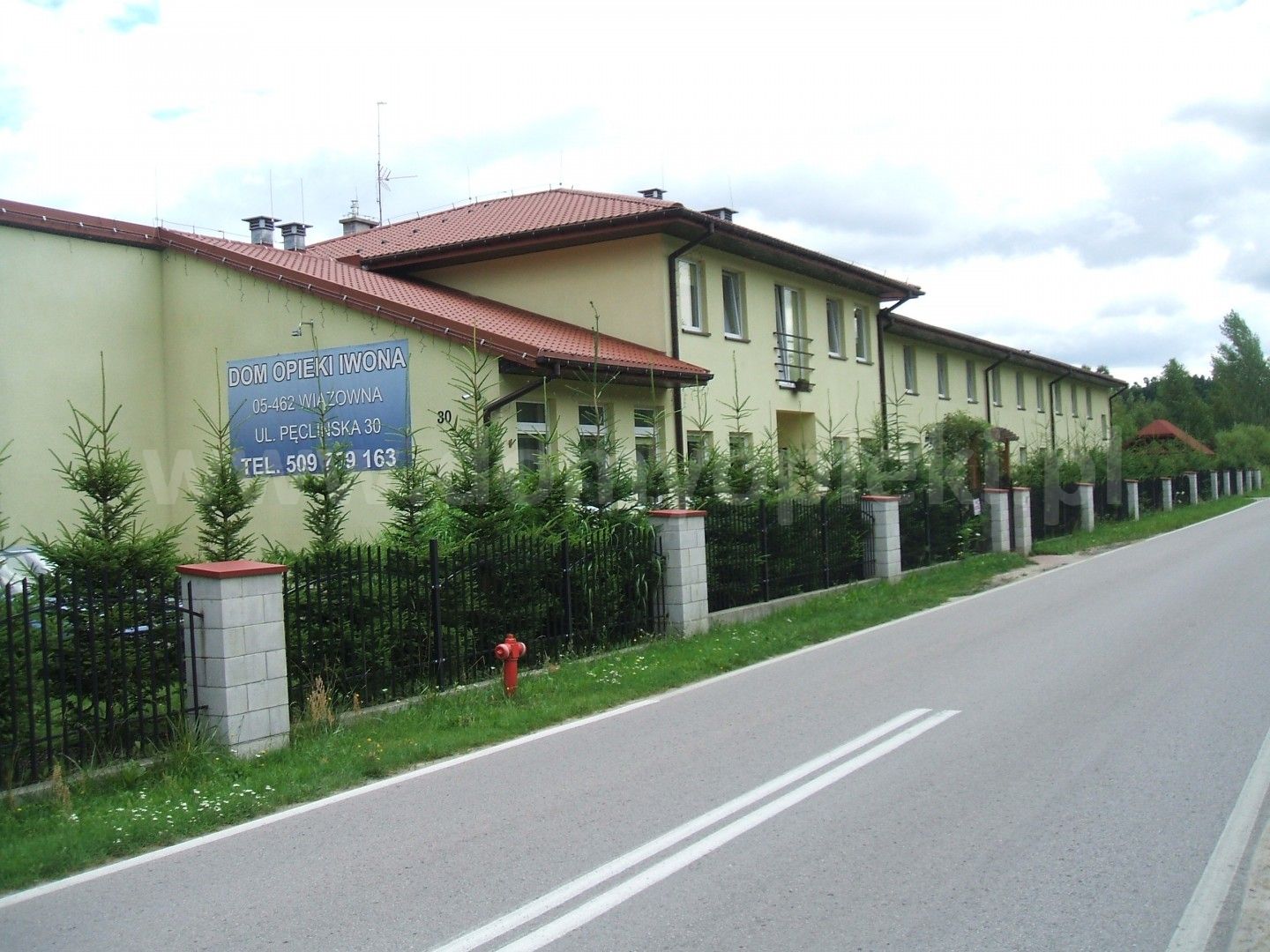Dom, w którym mieści się Dom Opieki "Iwona", znajduje się przy ulicy Pęclińskiej w Wiązownej, niezbyt ruchliwej, lecz i nieodludnej. Dzięki temu w najbliższym otoczeniu wiele jest bodźców pobudzających percepcję naszych podopiecznych. Wokół rosną sosny, świerki i drzewa owocowe. Znajduje się na skraju Mazowieckiego Parku Krajobrazowego. Wokół stoją zwykłe domy, dlatego nasi pensjonariusze mogą obserwować codzienne życie sąsiadów. Bogactwem tej miejscowości a zarazem jednym z atutów lokalizacji jest przyroda: powyżej 70% jej obszaru objęte jest różnego rodzaju formami ochrony. Są to rezerwaty przyrody, które obejmują swoim obszarem większość terenów leśnych, łąkowych i polnych położonych w bezpośredniej lokalizacji domu opieki.