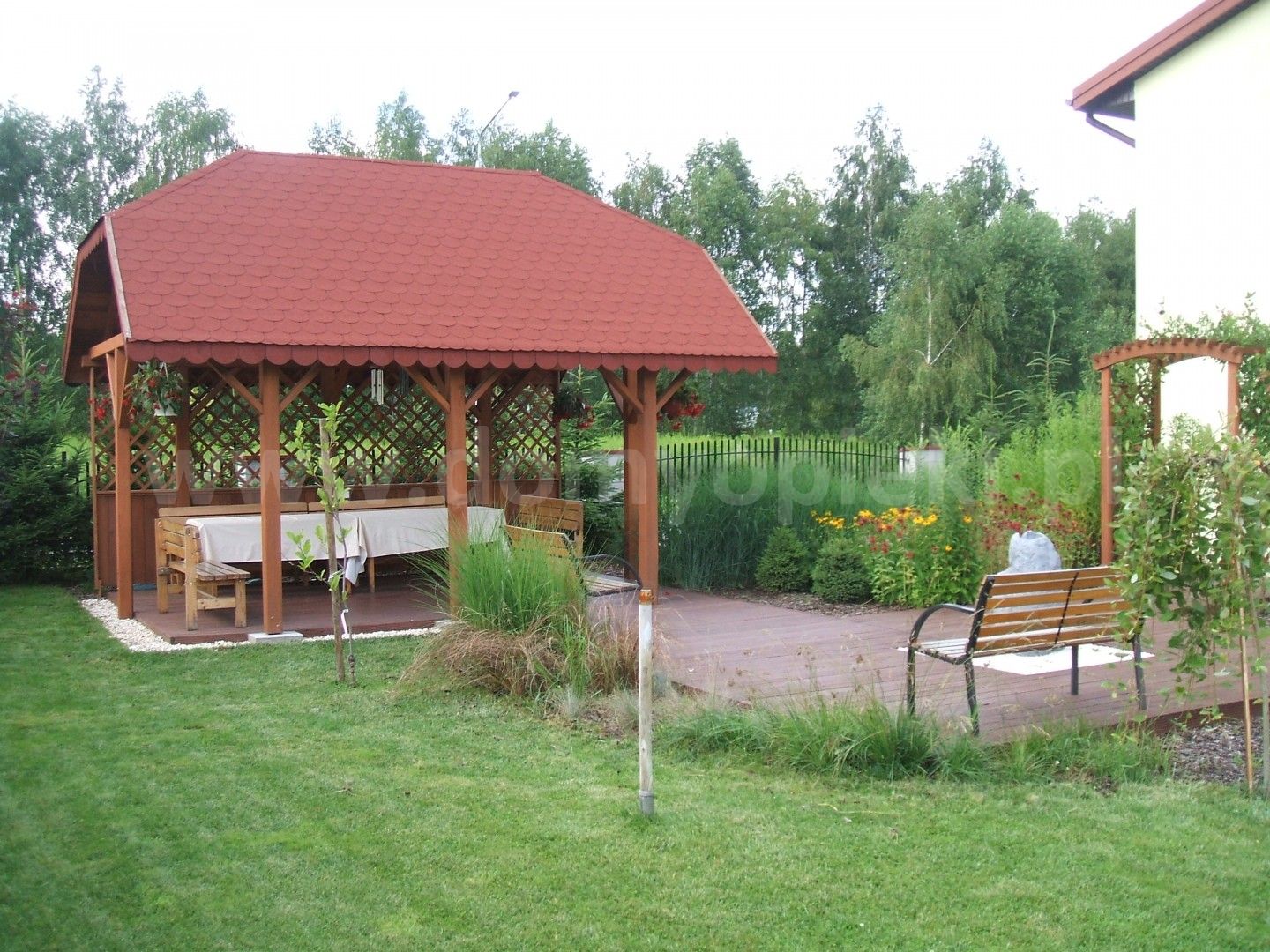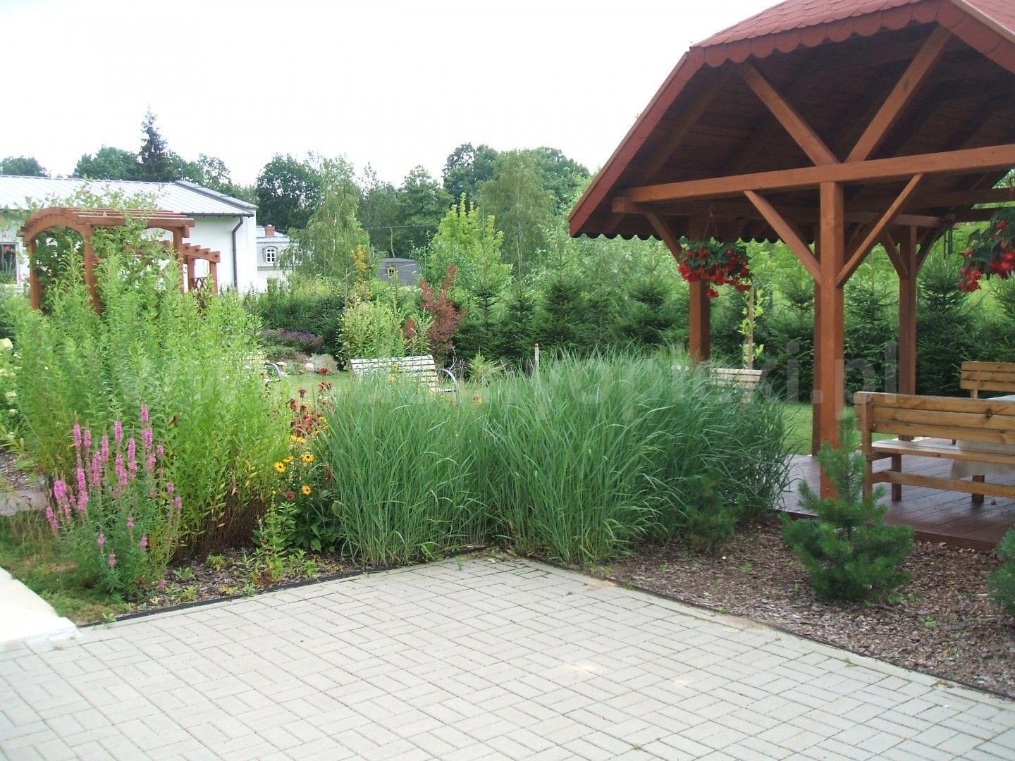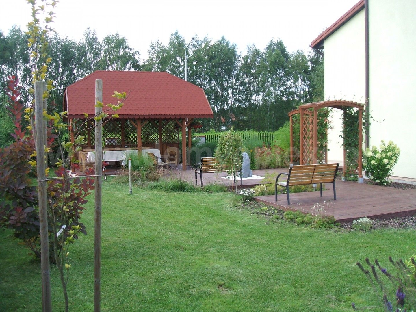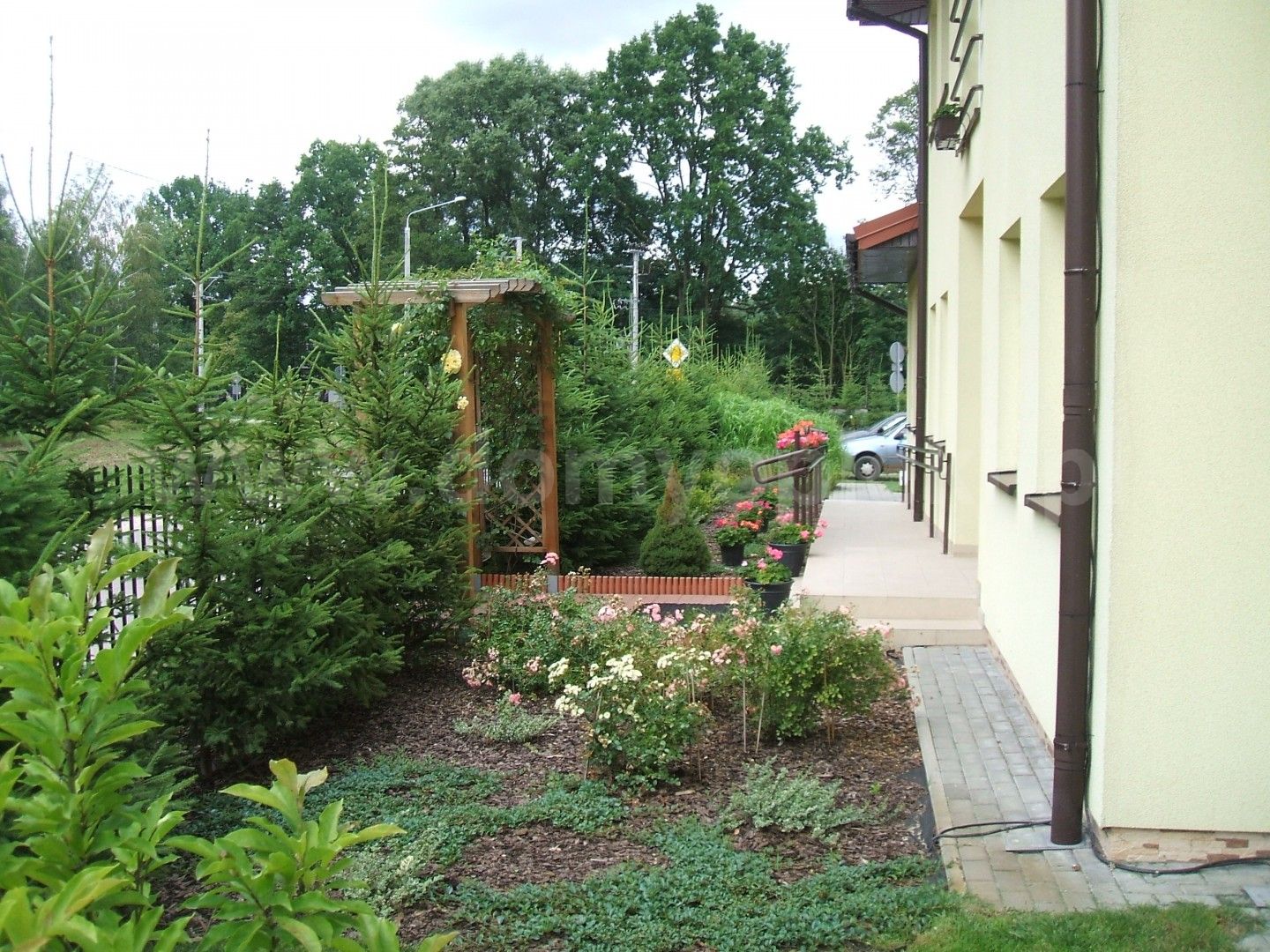 Otoczenie: spokojna okolica, zieleń (sosny, świerki, drzewa owocowe), blisko tereny chronione Mazowieckiego Parku Krajobrazowego