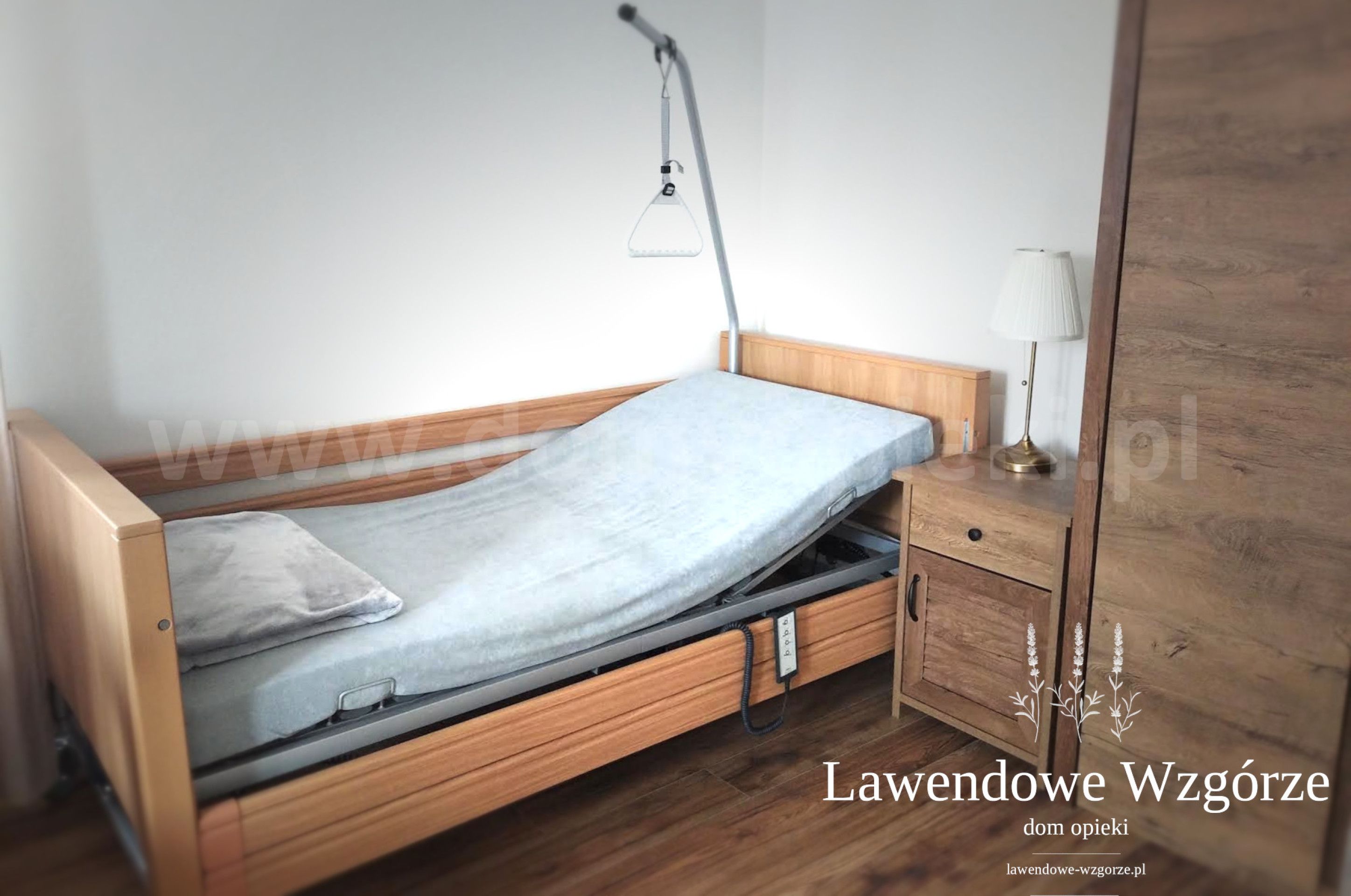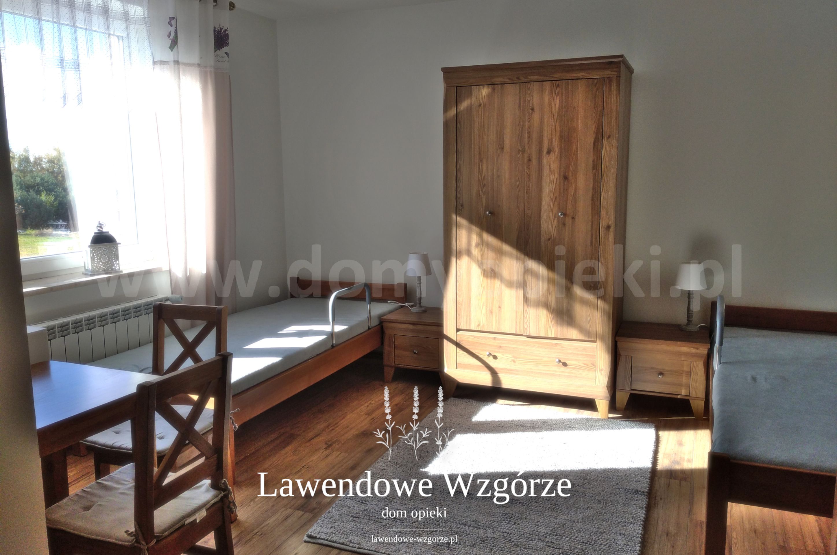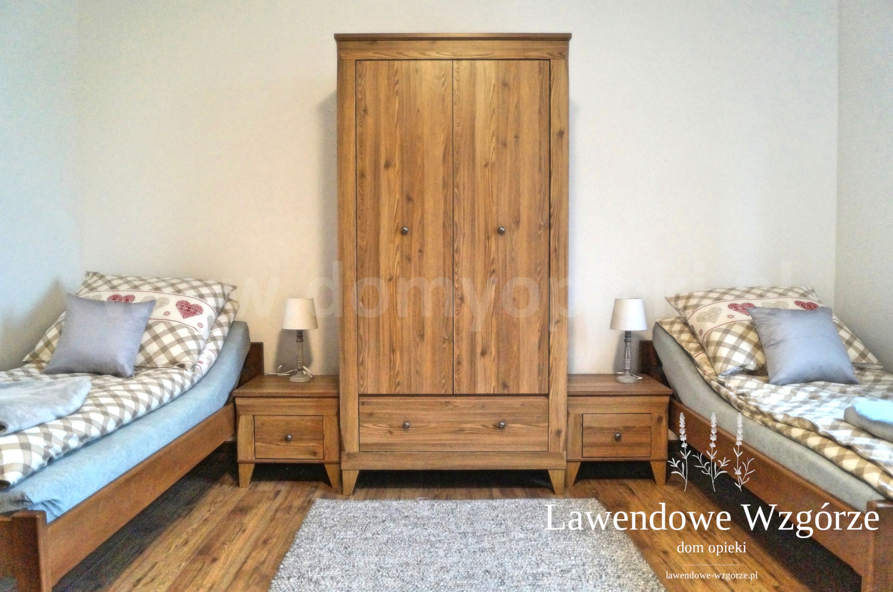 - Pobyt w 2 lub 3-os. pokoju, wyposażonym w łóżko rehabilitacyjne lub tapczan, szafę, stół, krzesła i szafkę nocną dla każdej osoby