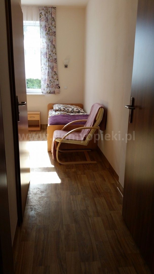 Udogodnienia: pokoje 2- i 3-osobowe z łazienkami przystosowanymi dla osób niepełnosprawnych, system przywoławczy, świetlica, sala rehabilitacyjna, taras, ogród z altaną, balkon, winda zewnętrzna i w budynku
