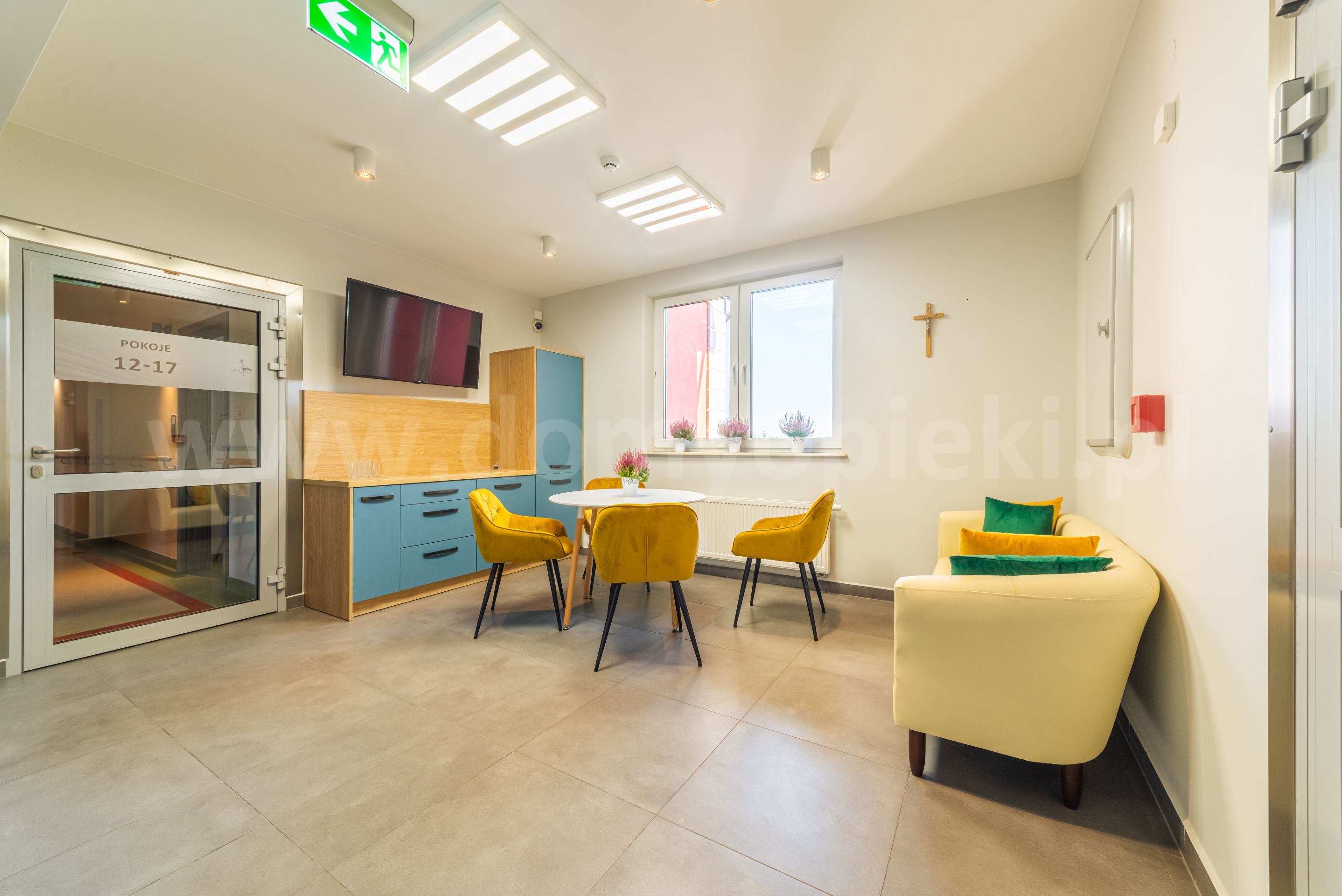 Mieszkańcy mają do dyspozycji pokoje jedno- i dwuosobowe oraz liczne pomieszczenia wspólne: jadalnię, salę rekreacyjną, pokój spotkań z rodziną, herbaciarnię, bibliotekę i zewnętrzną siłownię. W ogrodzie dostępne są tereny spacerowe, oczko wodne i elementy rekreacyjne, a także możliwość pracy w przydomowej szklarni.