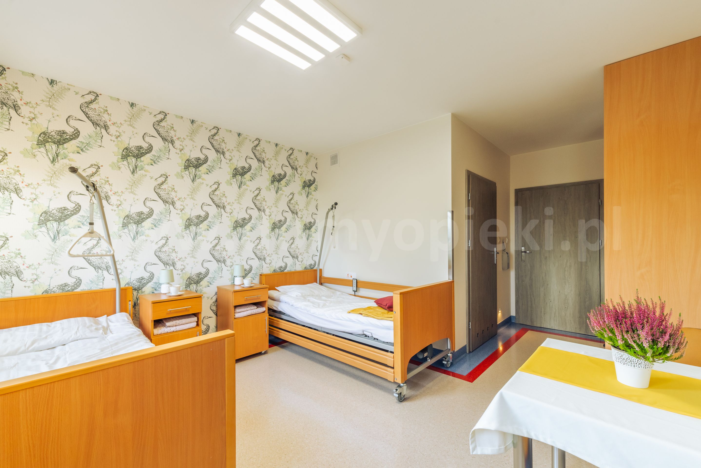 Tak — placówka zapewnia opiekę całodobową oraz dostęp do rehabilitacji i zajęć terapeutycznych. W drugim budynku znajduje się gabinet lekarski, a oferta obejmuje także terapie ruchowe prowadzone w sali rehabilitacyjnej oraz zewnętrzną siłownię.