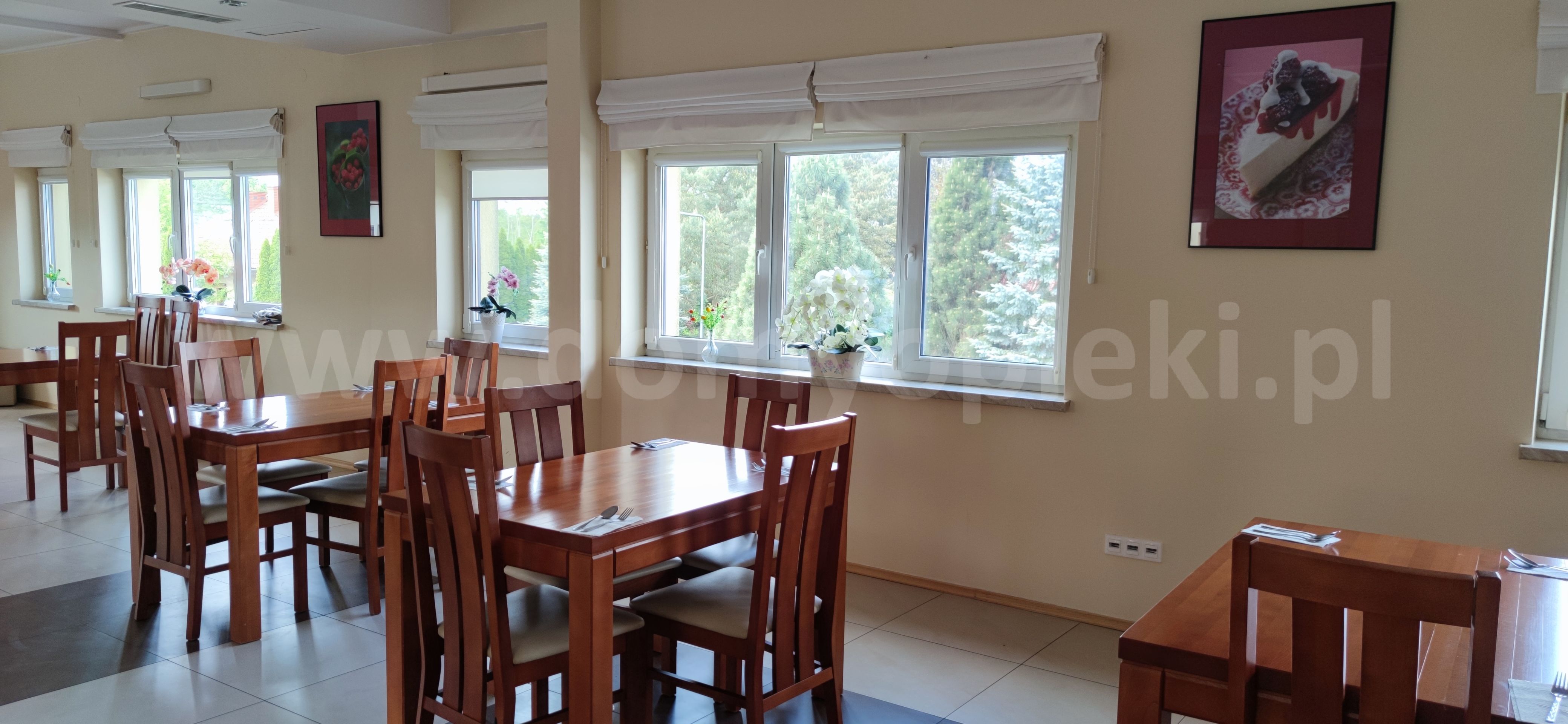 Warunki pobytu obejmują klimatyzowane pokoje jedno-, dwu- i trzyosobowe z łazienkami, dostępem do TV i Internetu oraz wyposażeniem medycznym, jak łóżka rehabilitacyjne i systemy przywoławcze. Oferta obejmuje pełne wyżywienie, terapię zajęciową i indywidualny program rehabilitacji, a otoczenie placówki jest opisane jako spokojne i zielone — warunki sprzyjające wypoczynkowi i aktywizacji seniorów.