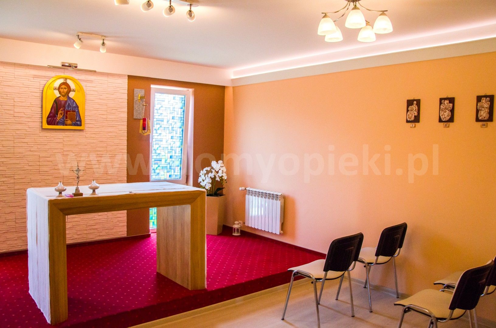Udogodnienia: pokoje 2-osobowe i 3-osobowe (łazienki w pokojach, duża łazienka z mobilną wanną), kuchnia, pralnia, jadalnio-świetlice, pokój do rehabilitacji, biblioteka, kącik dla odwiedzających dzieci, kaplica, winda, ogród, usługi fryzjera, kosmetyczki i manikiurzystki