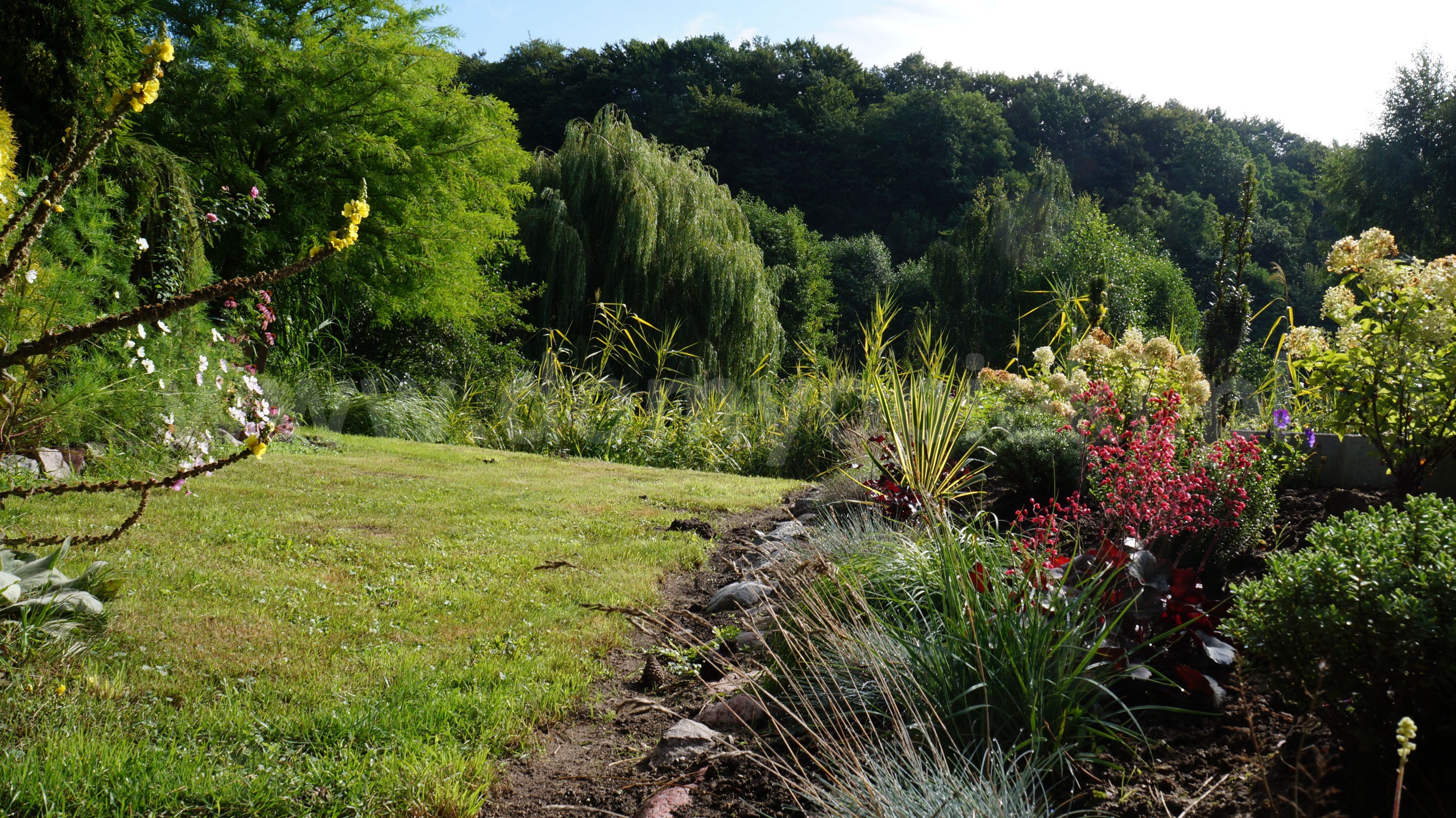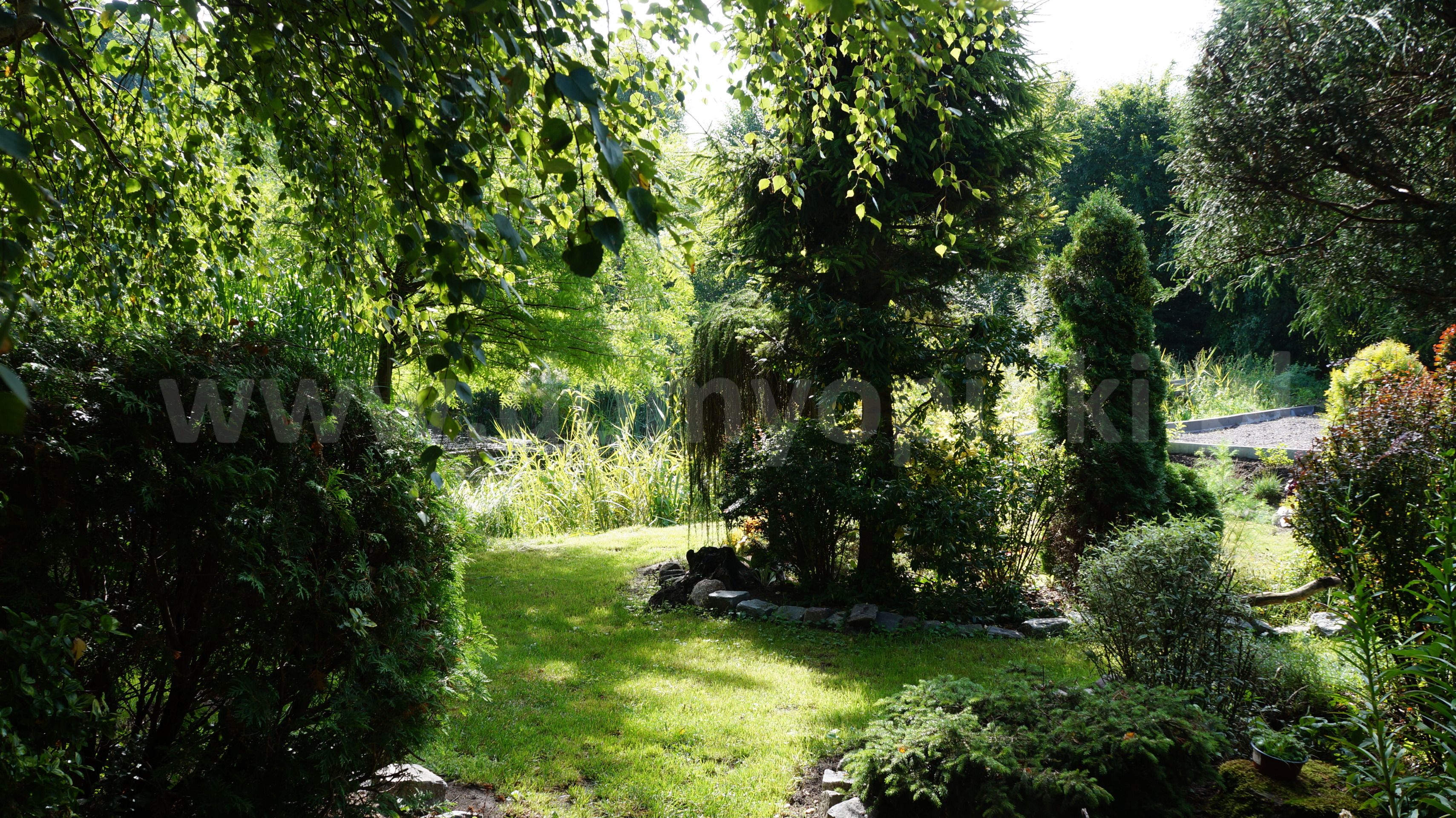 o duży ogród z zielenią oraz spokojną okolicę,