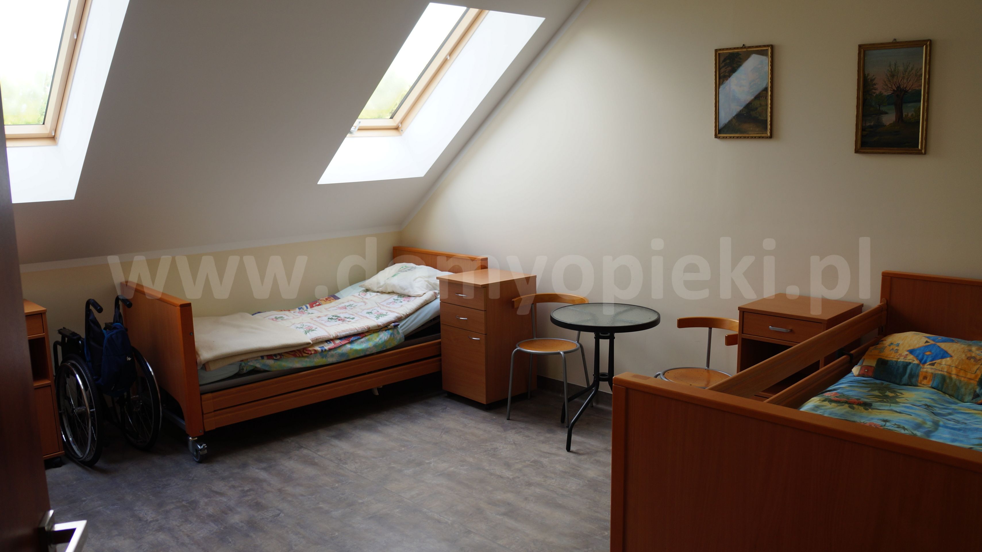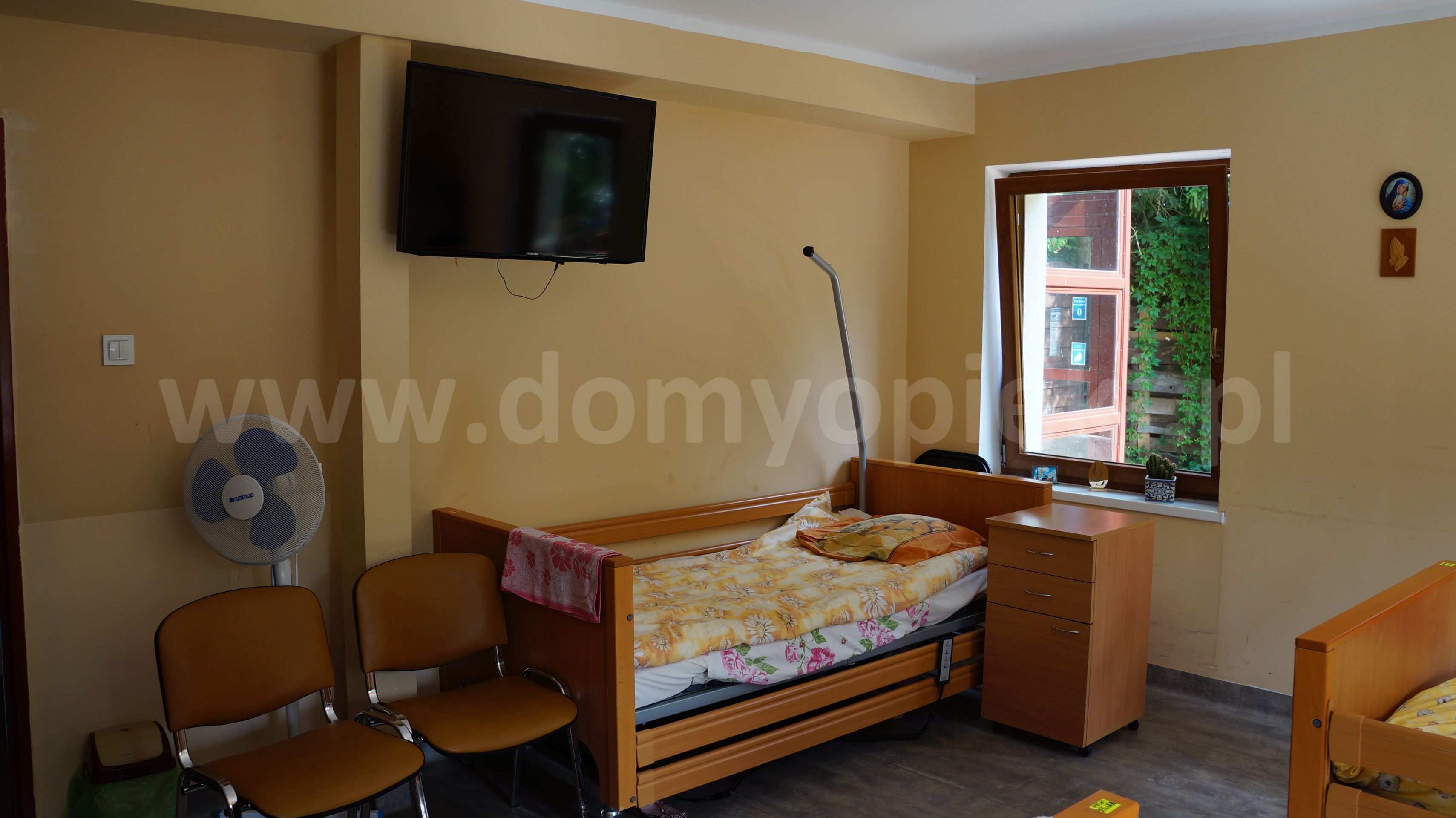 Placówka zapewnia opiekę pielęgnacyjną i konsultacje lekarskie raz w tygodniu; wyposażenie w łóżka rehabilitacyjne ułatwia prowadzenie zabiegów i opiekę medyczną.