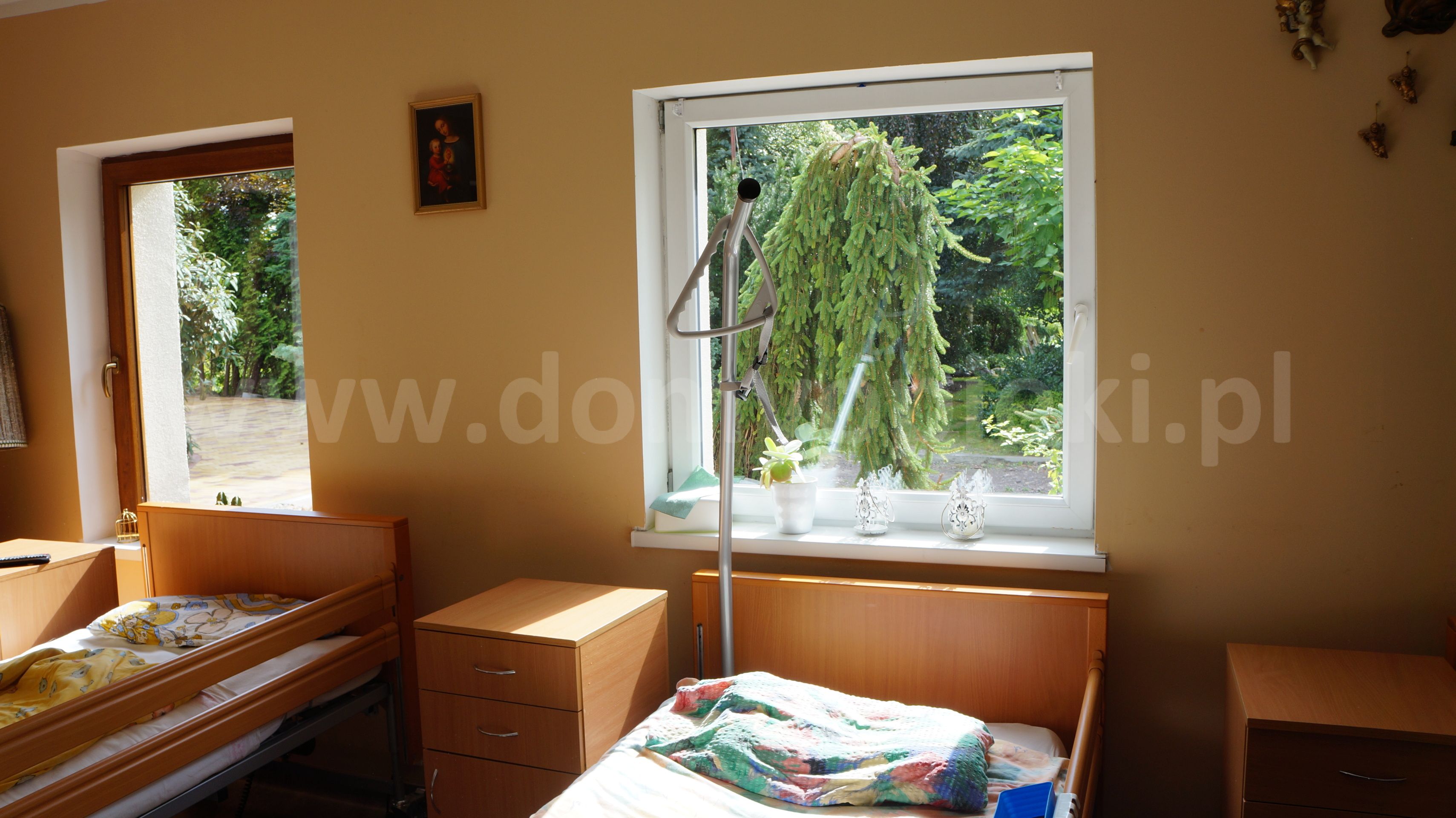 Udogodnienia: pokoje 1–4-osobowe, łóżka rehabilitacyjne, telewizor, kuchnia własna, ogród