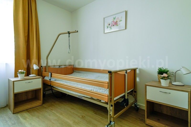Udogodnienia: pokoje 1- i 2-osobowe z łazienkami, system przywoławczy, Wi‑Fi, własna kuchnia, sala rehabilitacyjna, świetlica, usługi fryzjerskie i kosmetyczne
