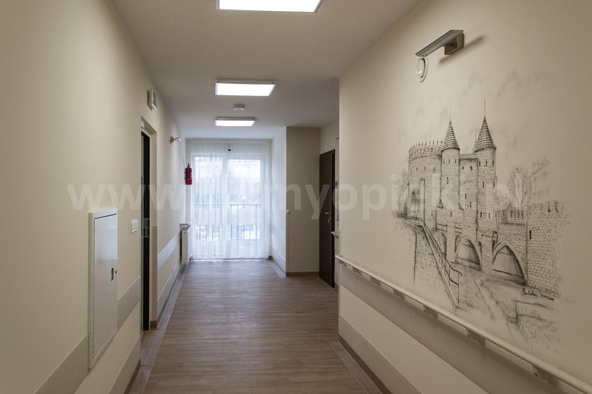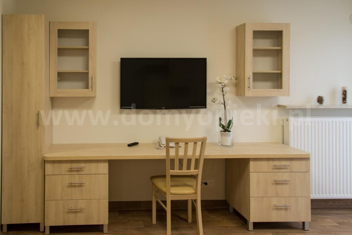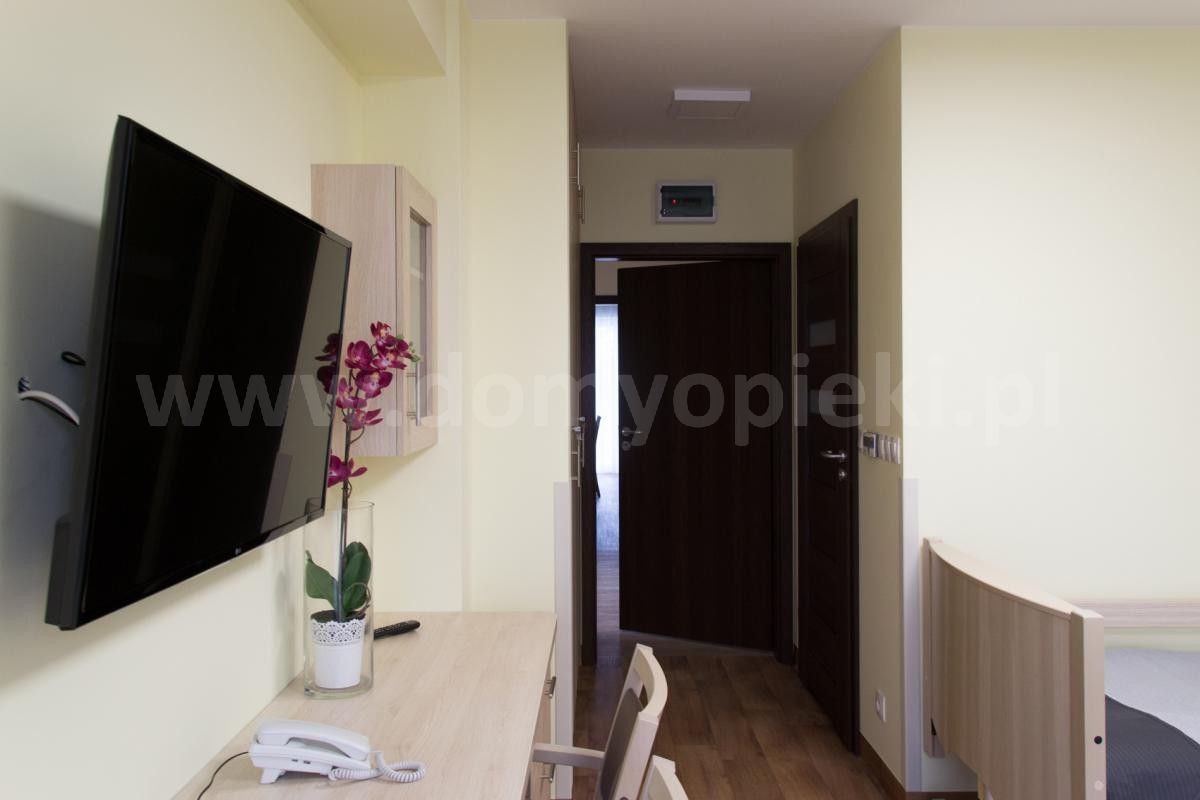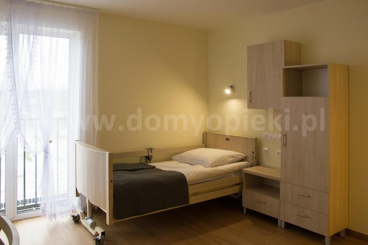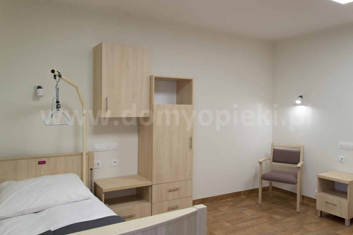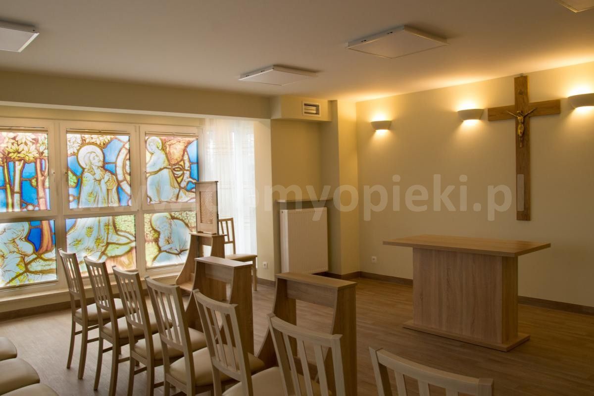 Udogodnienia: pokoje 1‑ i 2‑osobowe z łazienkami, winda, sala rehabilitacyjna, kaplica, stołówka z oprawą multimedialną, system monitoringu, system wezwania pomocy