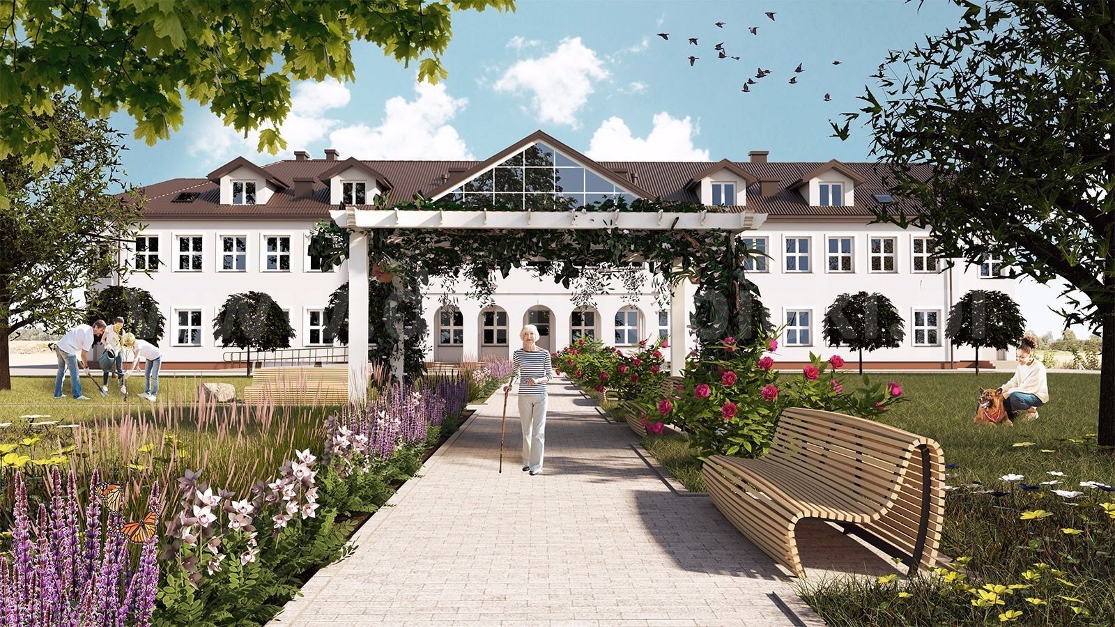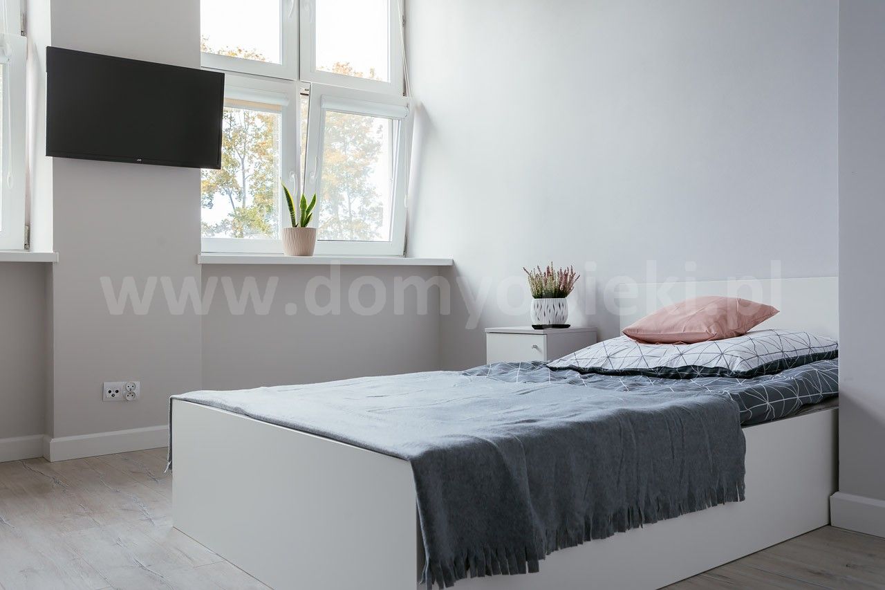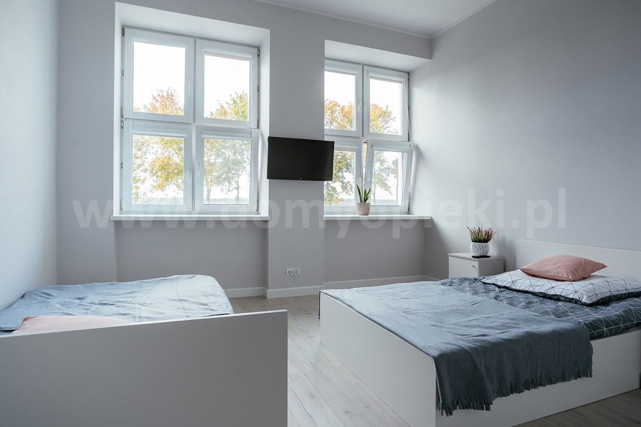 Bo jest wyjątkowa – ośrodek dla 68 pensjonariuszy, obok duży ogród i letnia altana. 1-, 2- lub 3-osobowe pokoje są widne i przestronne, mają oddzielną łazienkę, telewizor i szafę. Każdy wyposażony jest w instalację przyzywową. Cały obiekt przystosowaliśmy dla osób z niepełnosprawnością: łazienki mają odpowiednie udogodnienia, chodniki są szerokie, a w budynku jest winda. W ośrodku przygotowano też sale z nowoczesnymi łóżkami dla osób somatycznie chorych.