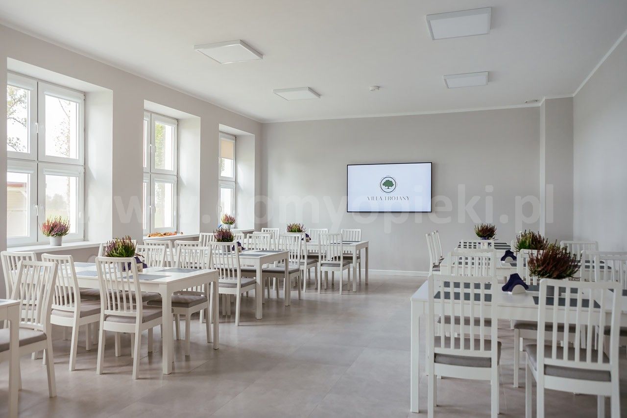 Ośrodek mieści maksymalnie 68 pensjonariuszy i stawia na atmosferę domową oraz wsparcie specjalistyczne: na miejscu pracują pielęgniarki, opiekunki oraz lekarz internista. Villa Trojany zapewnia rehabilitację i terapię zajęciową, a mieszkania oferowane są w wariantach 1-, 2- lub 3-osobowych z własnymi łazienkami i podstawowym wyposażeniem. Placówka jest przystosowana dla osób z niepełnosprawnością ruchową, a wokół budynku znajduje się duży ogród oraz altana sprzyjające rekreacji.