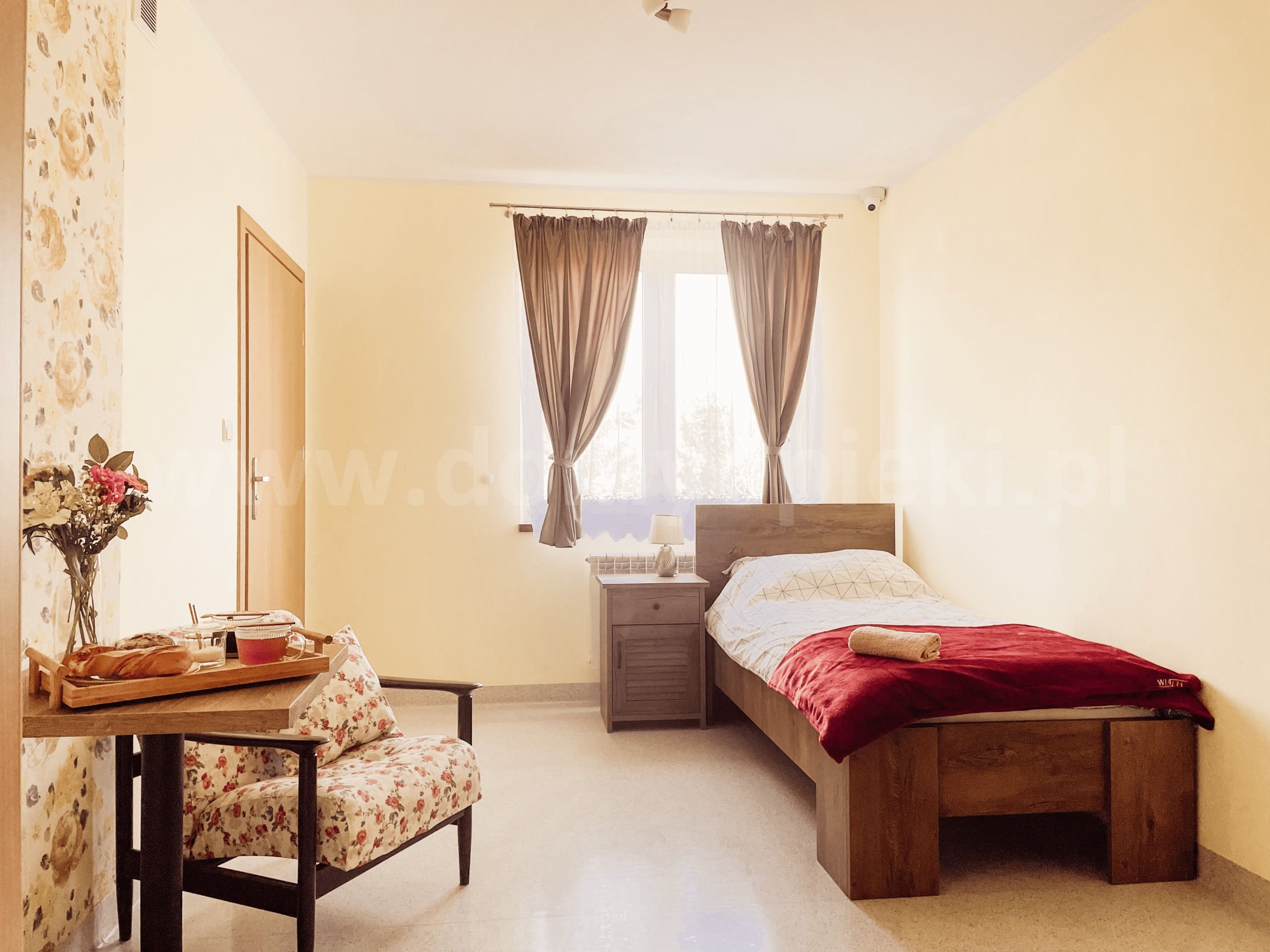 Udogodnienia: pokoje 1-, 2-, 3-osobowe z łazienkami, brak barier architektonicznych, winda, jadalnia, salon z biblioteką, ogród, usługi fryzjerskie i kosmetyczne, masażysta