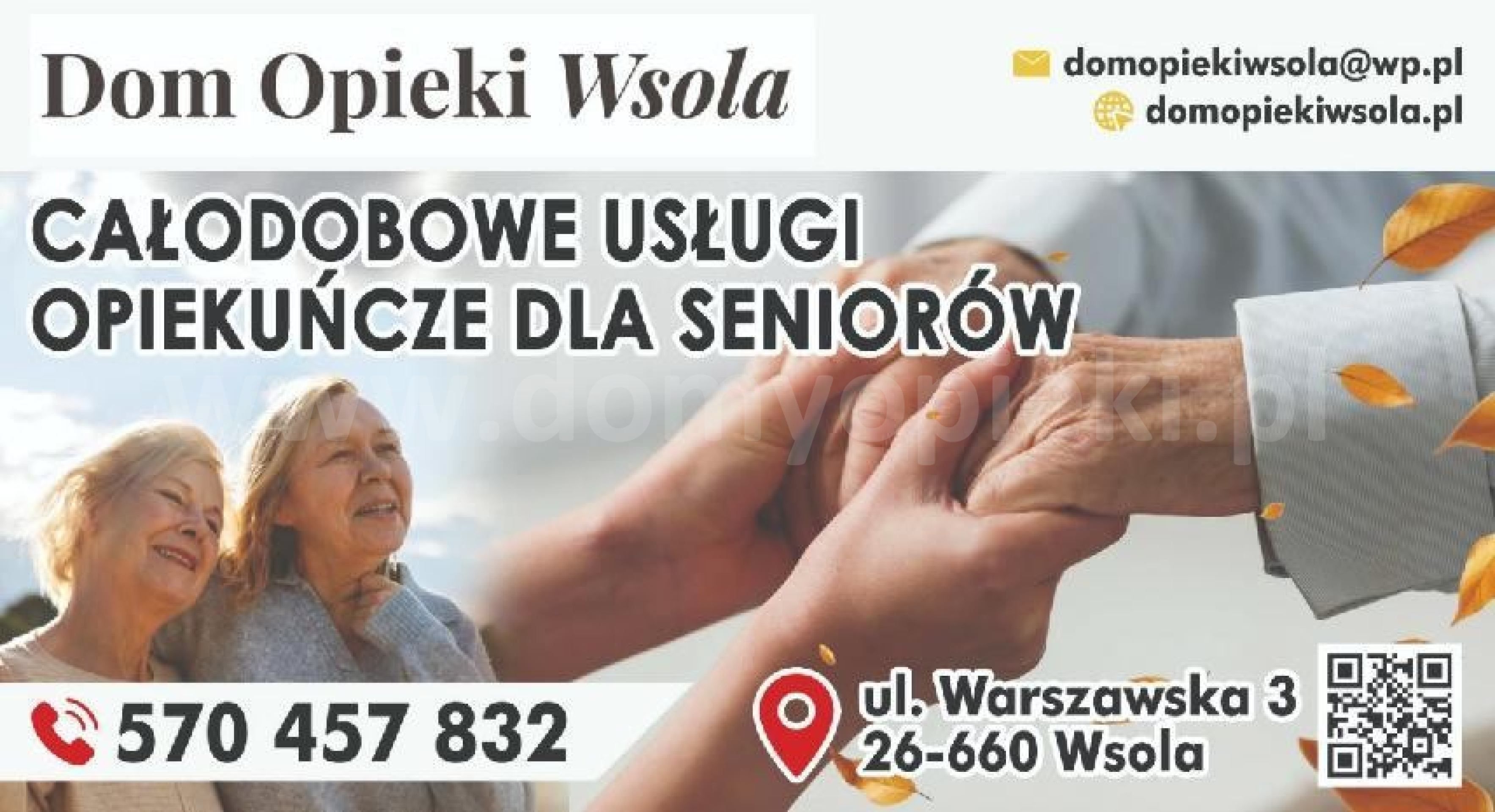 Dom Opieki Wsola "Cztery Pory Roku" to prywatna placówka opiekuńcza położona w spokojnej, zielonej miejscowości Wsola w województwie mazowieckim, około 10 km od Radomia. Ośrodek dysponuje miejscami dla kilkudziesięciu mieszkańców i zapewnia całodobową opiekę nad osobami starszymi, niepełnosprawnymi oraz przewlekle chorymi.
