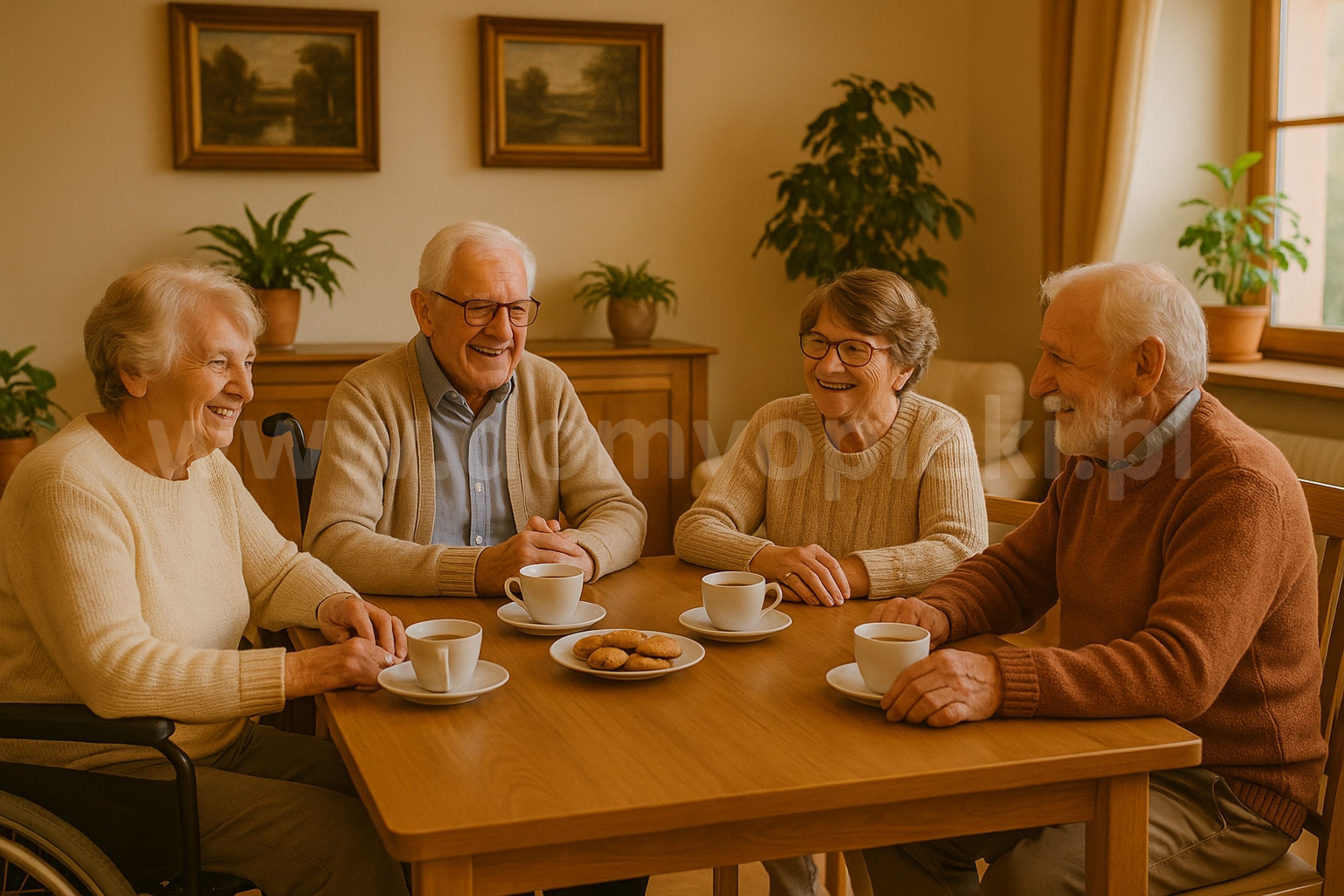 Placówka dysponuje pokojami jedno-, dwu- i trzyosobowymi, wyposażonymi w instalacje przywoławcze oraz dostęp do internetu. Na terenie ośrodka znajdują się również jadalnia, sala rehabilitacyjna, pracownia terapii zajęciowej oraz ogród z alejkami spacerowymi. Dom zapewnia mieszkańcom kompleksową opiekę medyczną, pielęgniarską, rehabilitacyjną oraz wsparcie psychologiczne i socjalne.