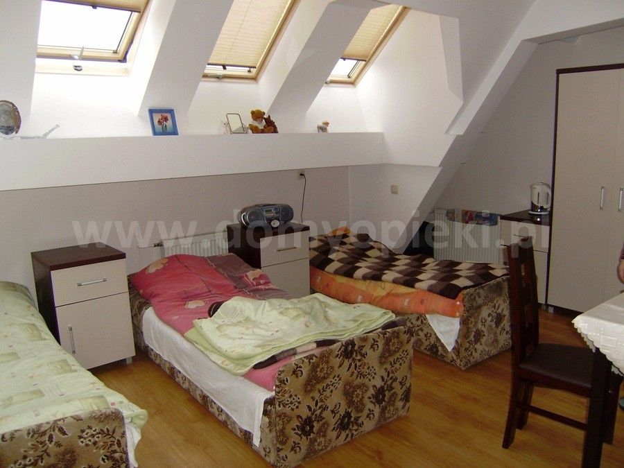 Każdy pokój wyposażony jest w podstawowy sprzęt taki jak: tapczan lub łóżko, stolik, krzesła, szafka przy łóżku, szafa. Na życzenie mieszkańca w pokojach instalowane są aparaty telefoniczne. Ze względu na to, iż do Domu kierowane są również małżeństwa dysponujemy pokojami rodzinnymi.