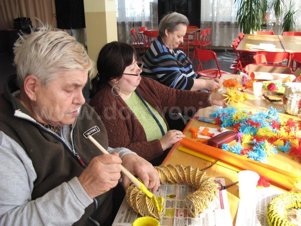 - arteterapia – podczas zajęć plastycznych mieszkańcy zajmują się malowaniem na papierze, płótnie, szkle, drewnie. Własnoręcznie wykonują pocztówki świątecznie, stroiki, kompozycje kwiatowe.