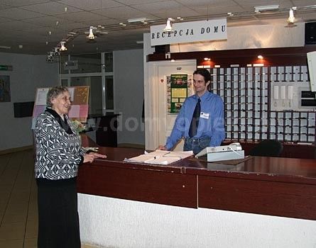 Wejście na teren Domu jest monitorowane ze względu na bezpieczeństwo mieszkańców. W holu głównym znajduje się recepcja i jednocześnie punkt informacyjny zarówno dla mieszkańców jak i gości.