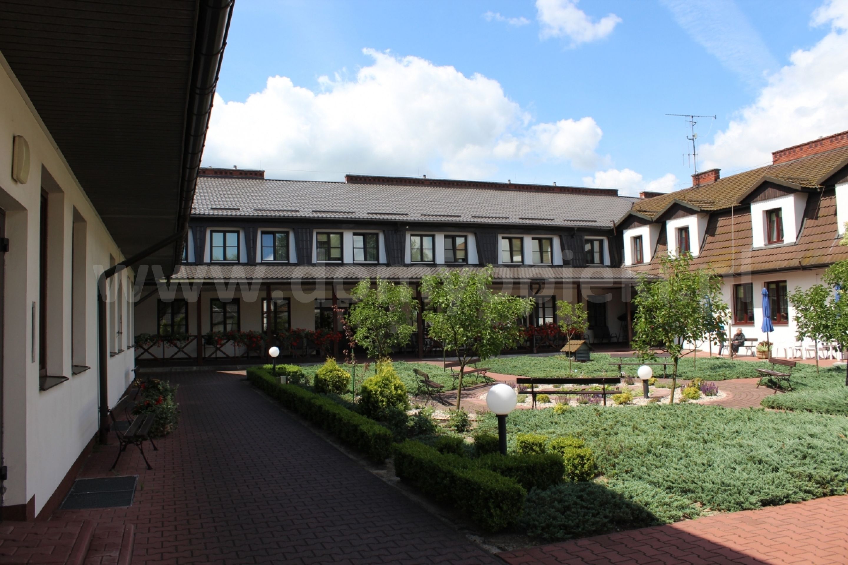 Budynki domu pomocy społecznej połączone są łącznikiem z kaplicą