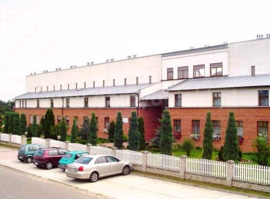 Przed wejściem wita nas o. Hildebrand Gregori założyciel ZGROMADZENIA SS. Benedyktynek, które w części tego Domu mają swój klasztor, a w pozostałej części budynku prowadzą - jak głosi napis:PRZYSTAŃ dla ludzi udręczonych życiem, cierpieniem, osamotnieniem - starają się, by ten DOM był dla nich DOMEM RADOSNEJ STAROŚCI