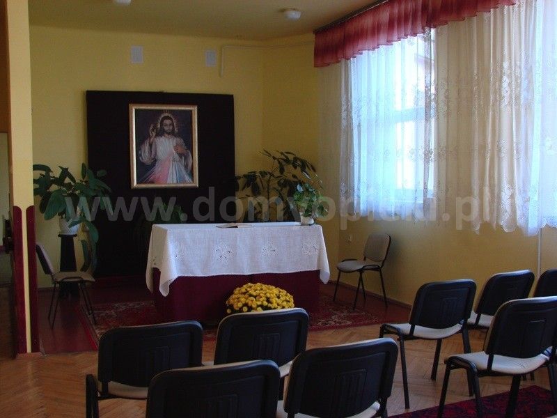 3 posiłki dziennie + podwieczorek. Dysponujemy gabinetem lekarskim, gabinetem zabiegowym, sala telewizyjną, salą do zajęć z rehabilitacji ruchowej i terapii zajęciowej.