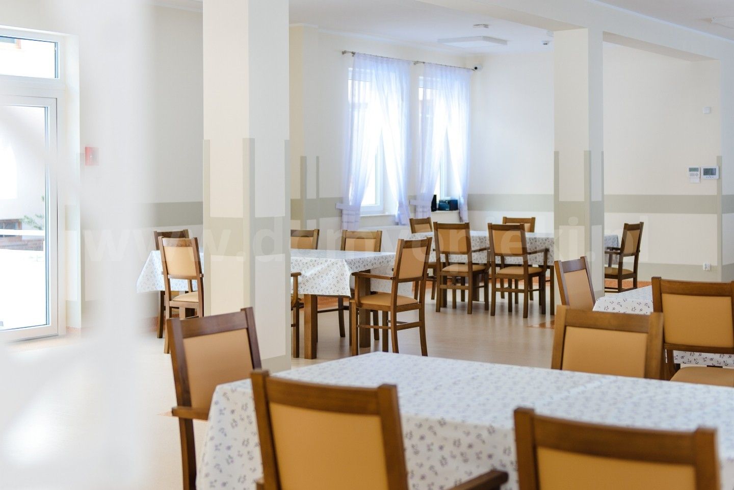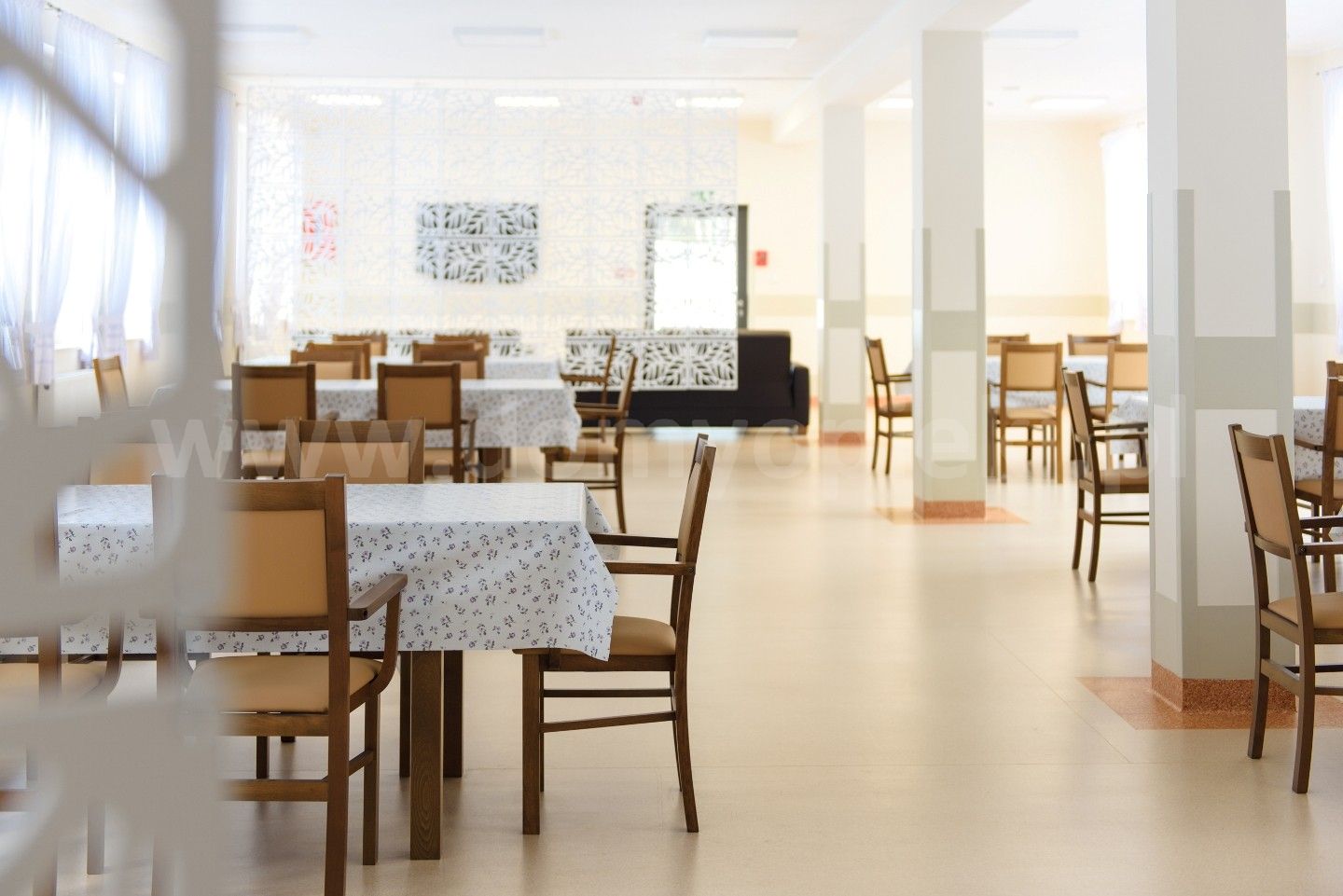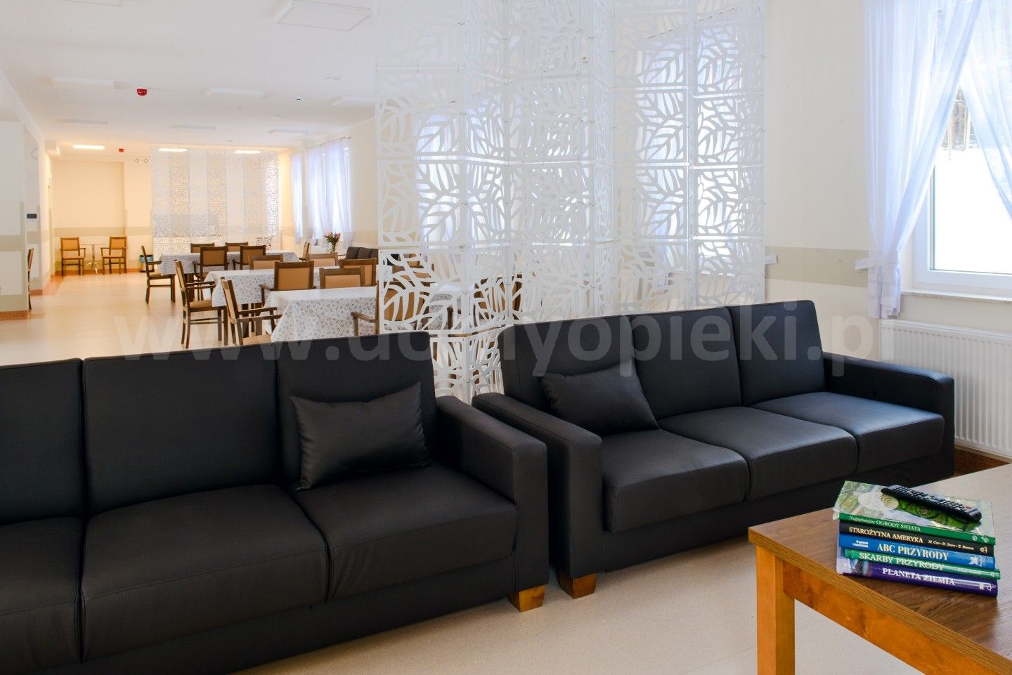 Udogodnienia: własna kuchnia i pięć posiłków dziennie (diety uwzględnione), pomoc w codziennych czynnościach, pranie i sprzątanie, terapia zajęciowa, opieka duszpasterska