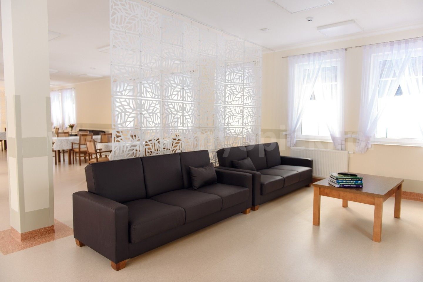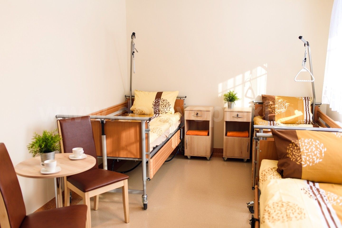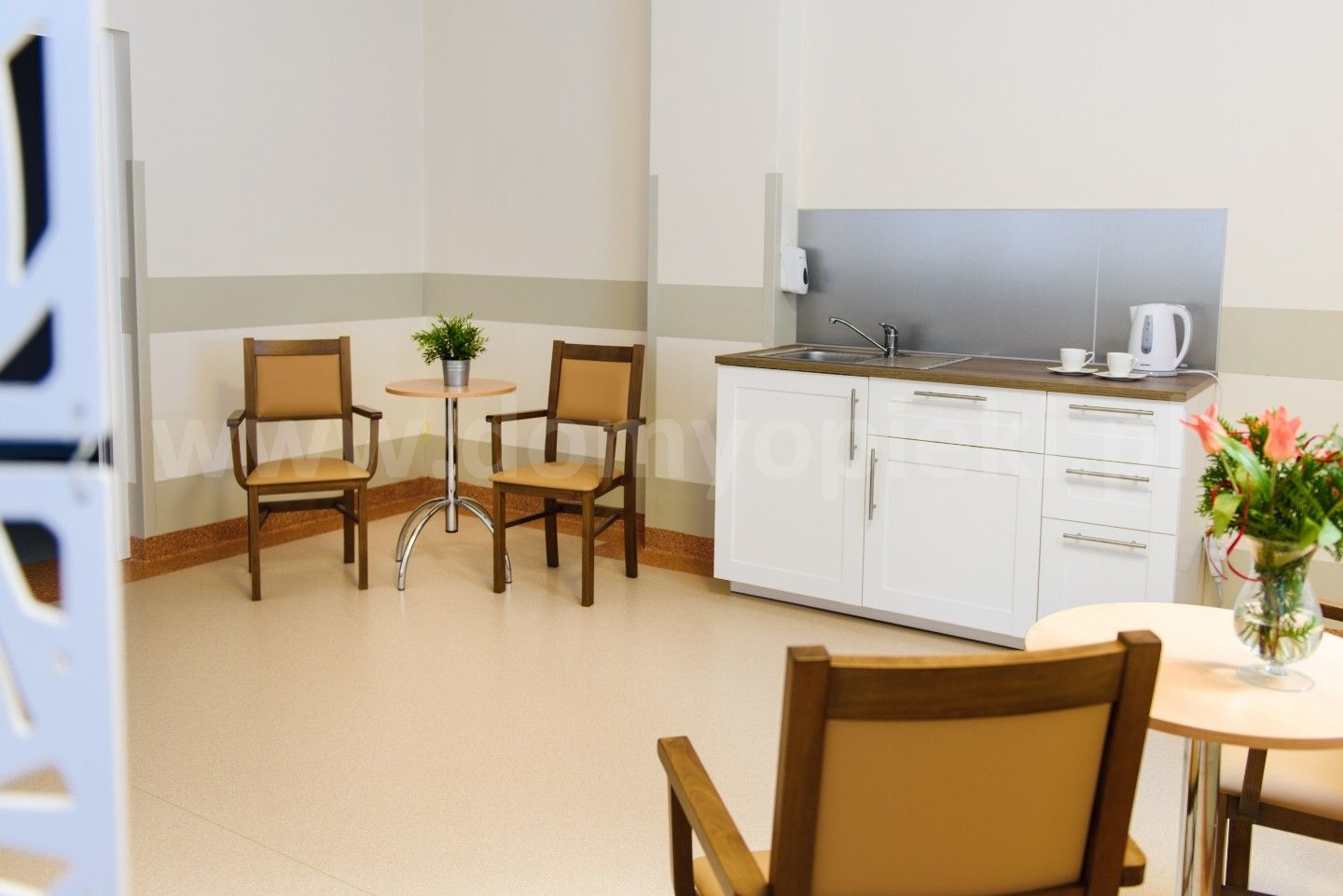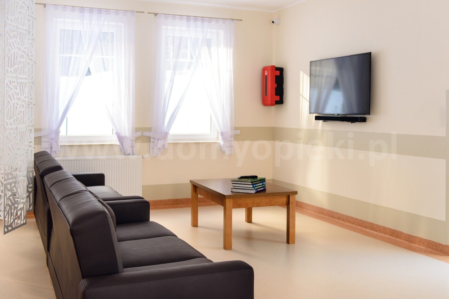 Udogodnienia: własna kuchnia i pięć posiłków dziennie (diety uwzględnione), pomoc w codziennych czynnościach, pranie i sprzątanie, terapia zajęciowa, opieka duszpasterska