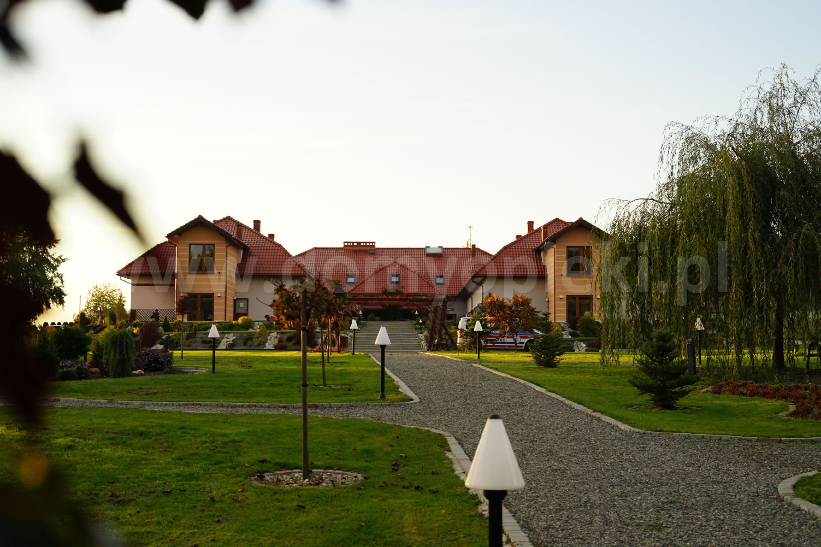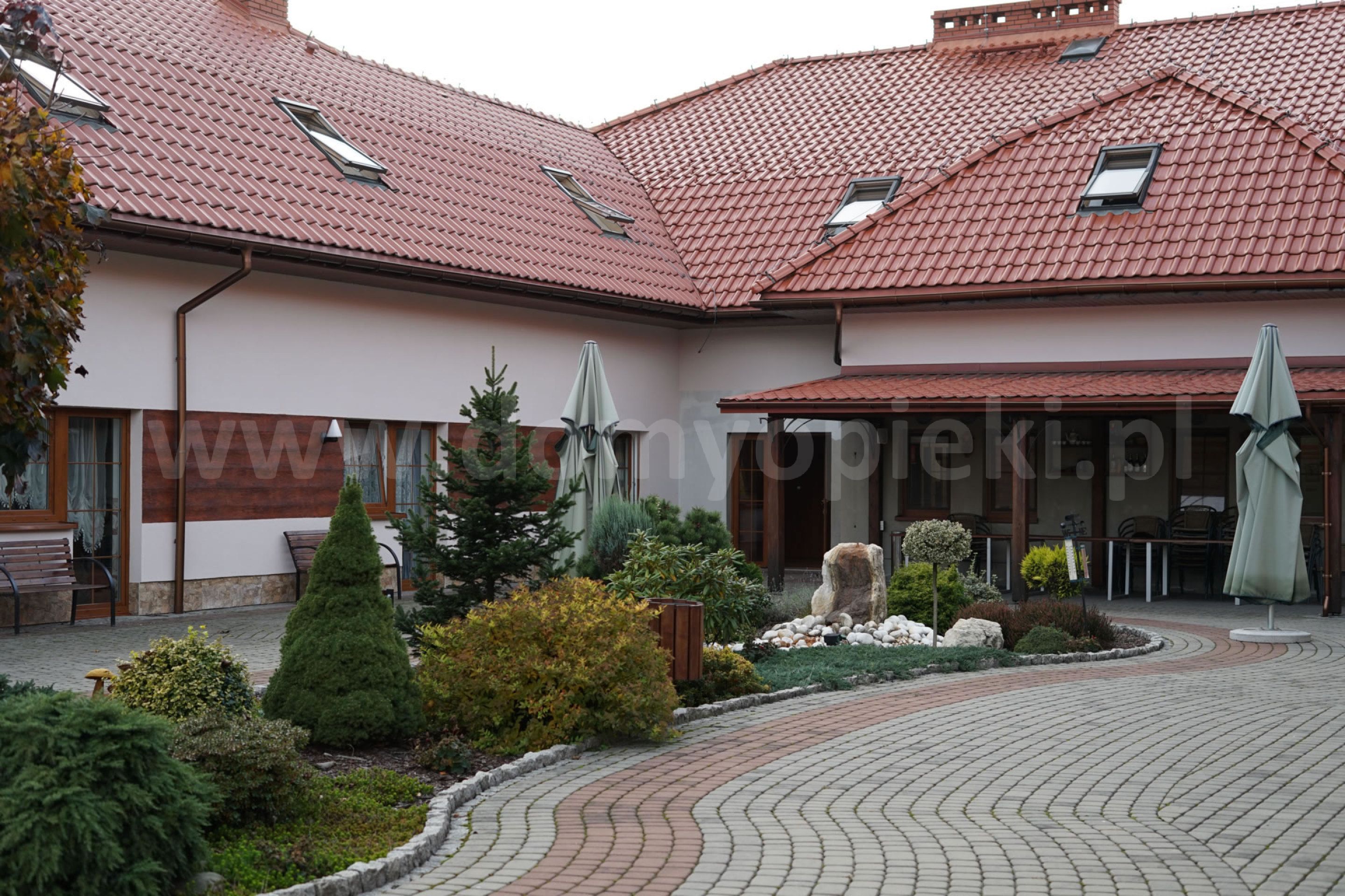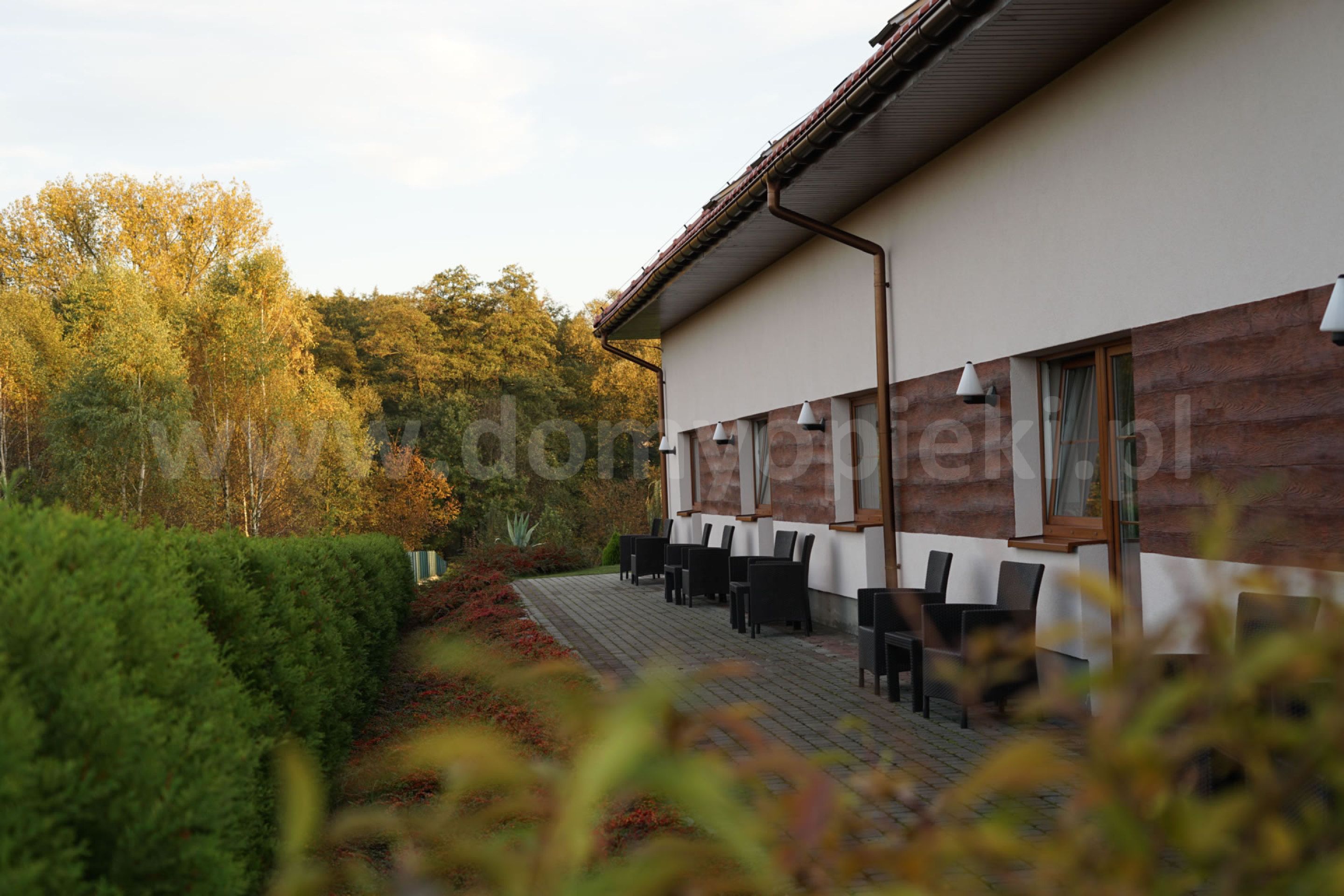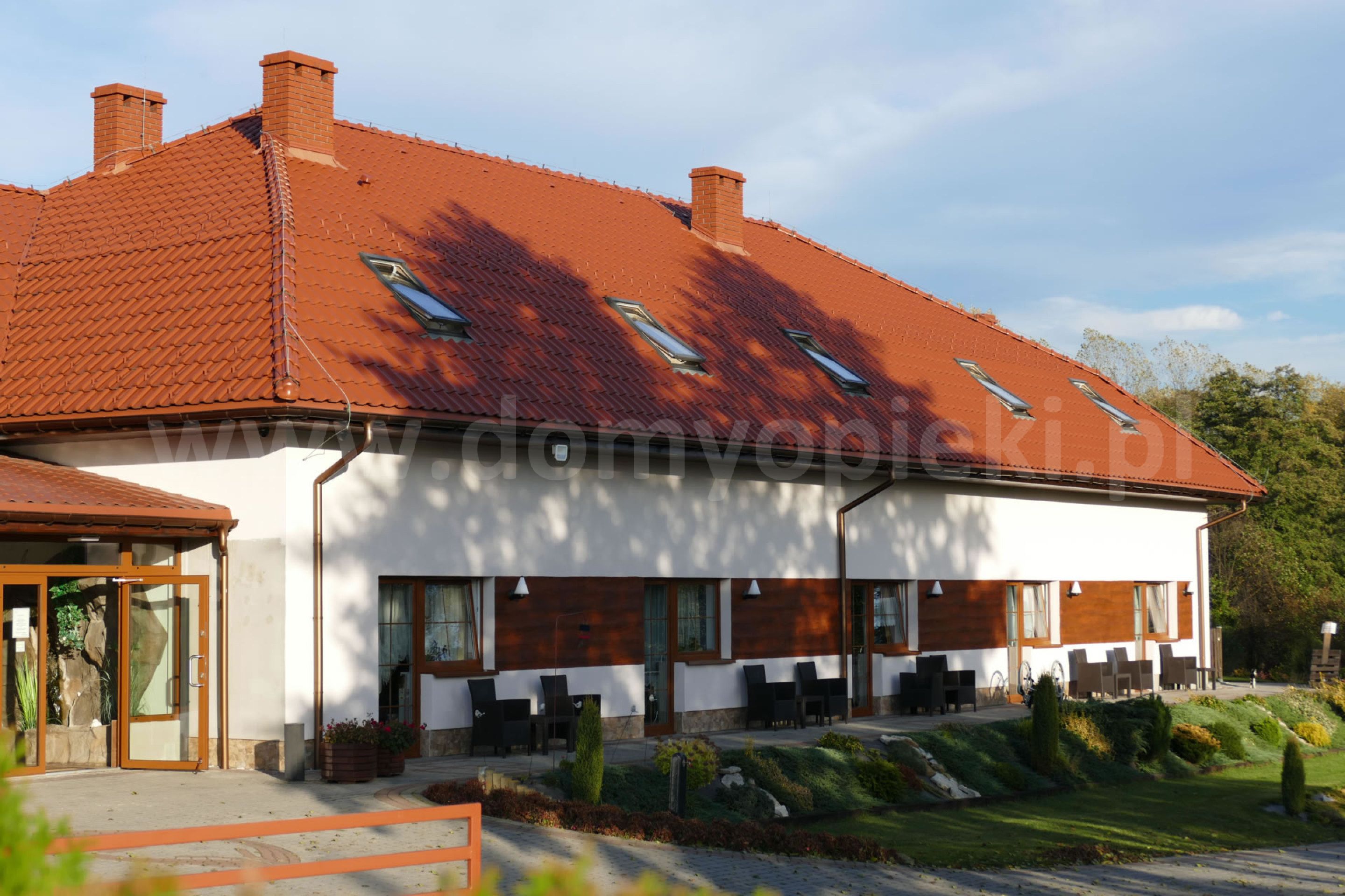 Udogodnienia: pokoje 1-, 2-, 3-osobowe z łazienką i przywoławczą instalacją, TV, telefon, ogród, usługi pralnicze, krawieckie i fryzjerskie