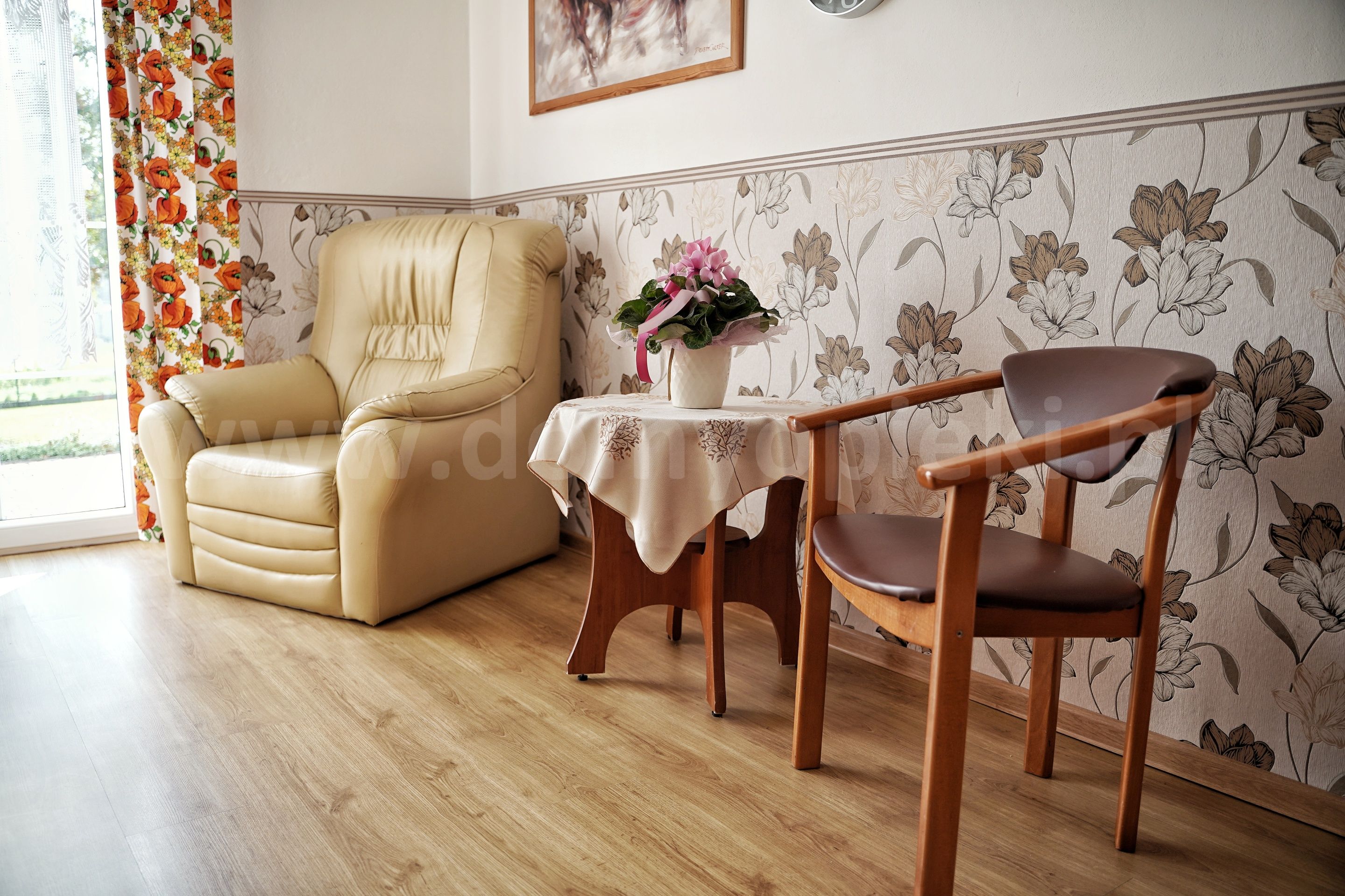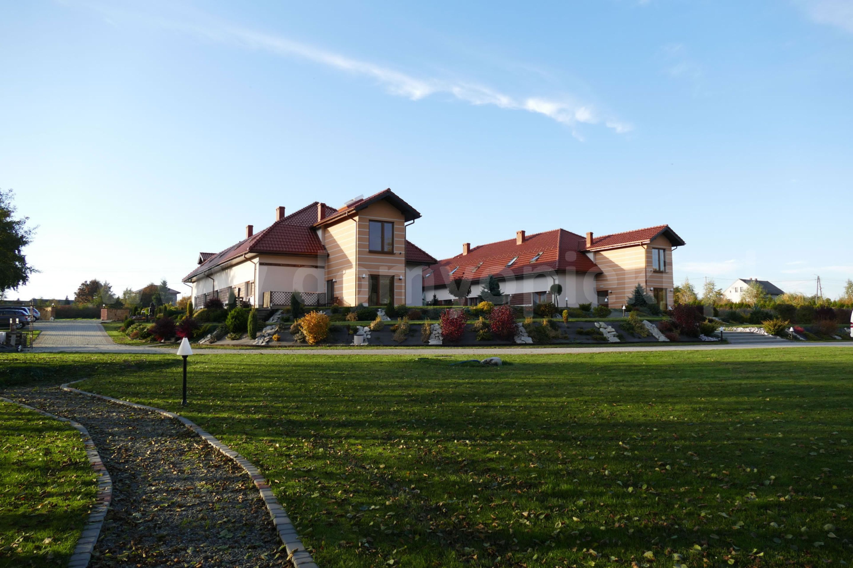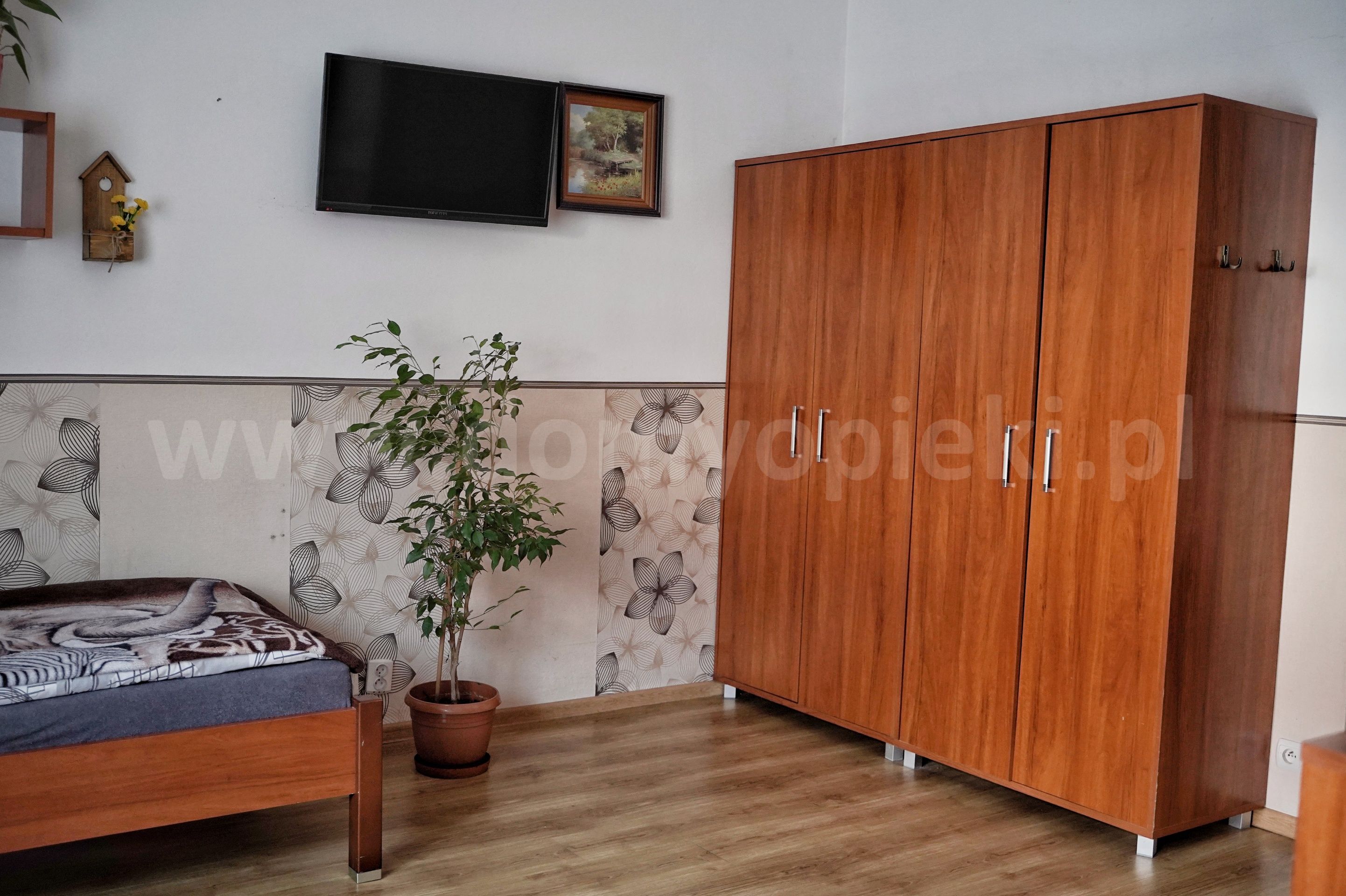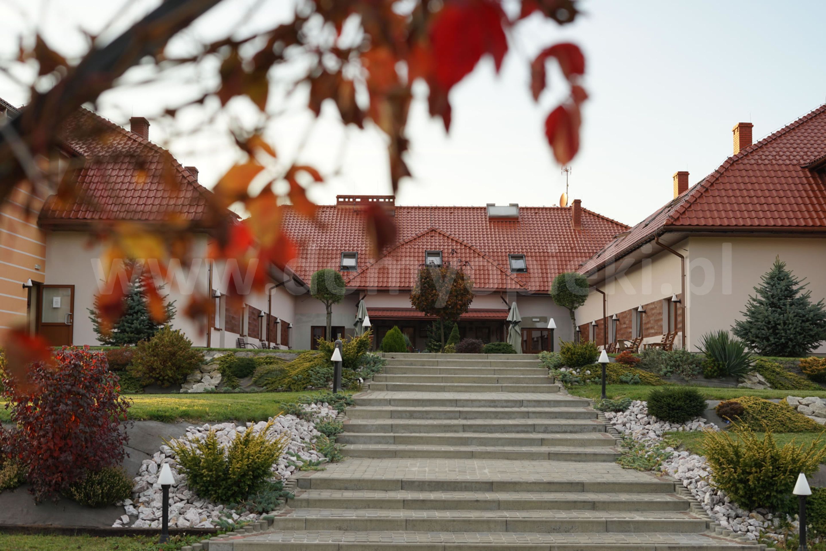 Udogodnienia: pokoje 1-, 2-, 3-osobowe z łazienką i przywoławczą instalacją, TV, telefon, ogród, usługi pralnicze, krawieckie i fryzjerskie