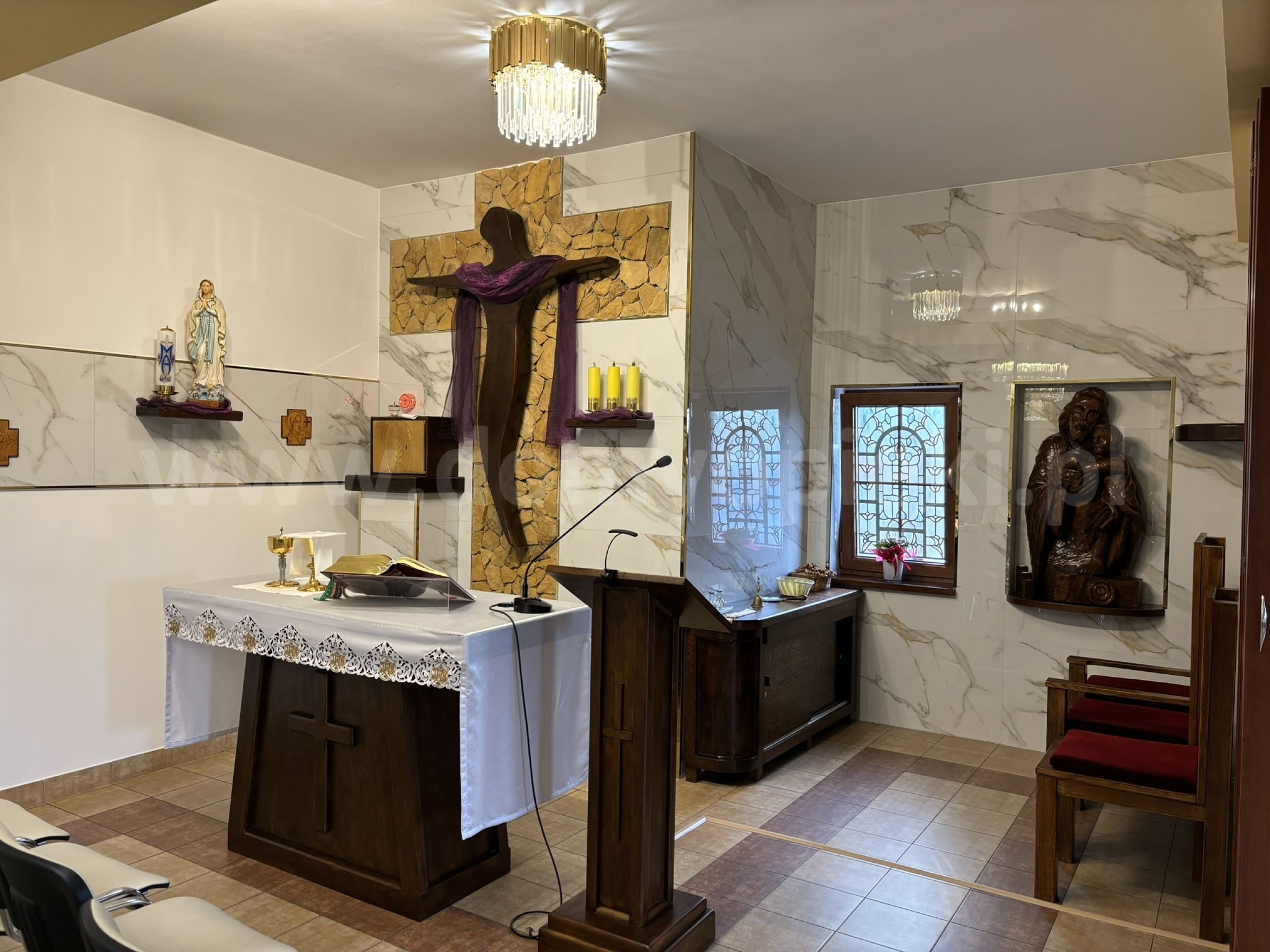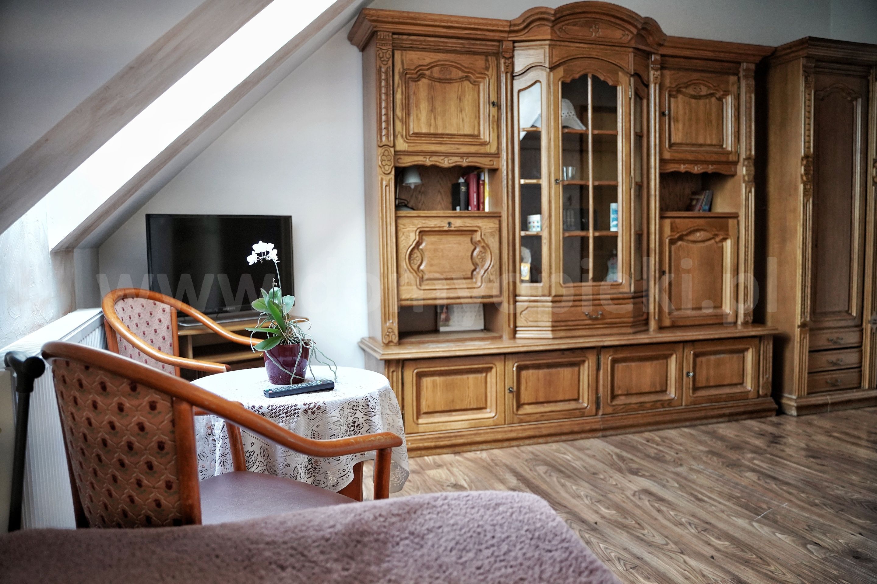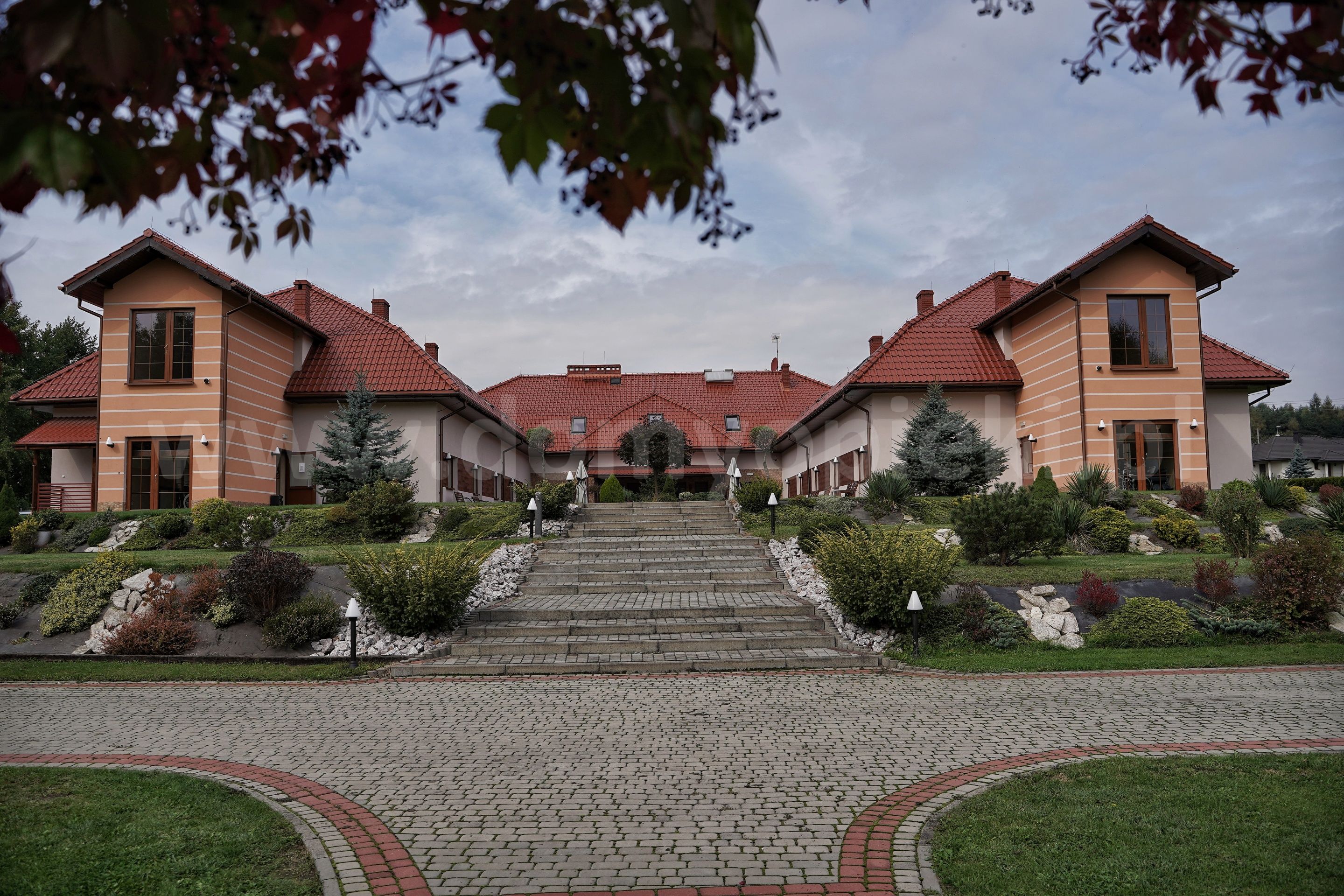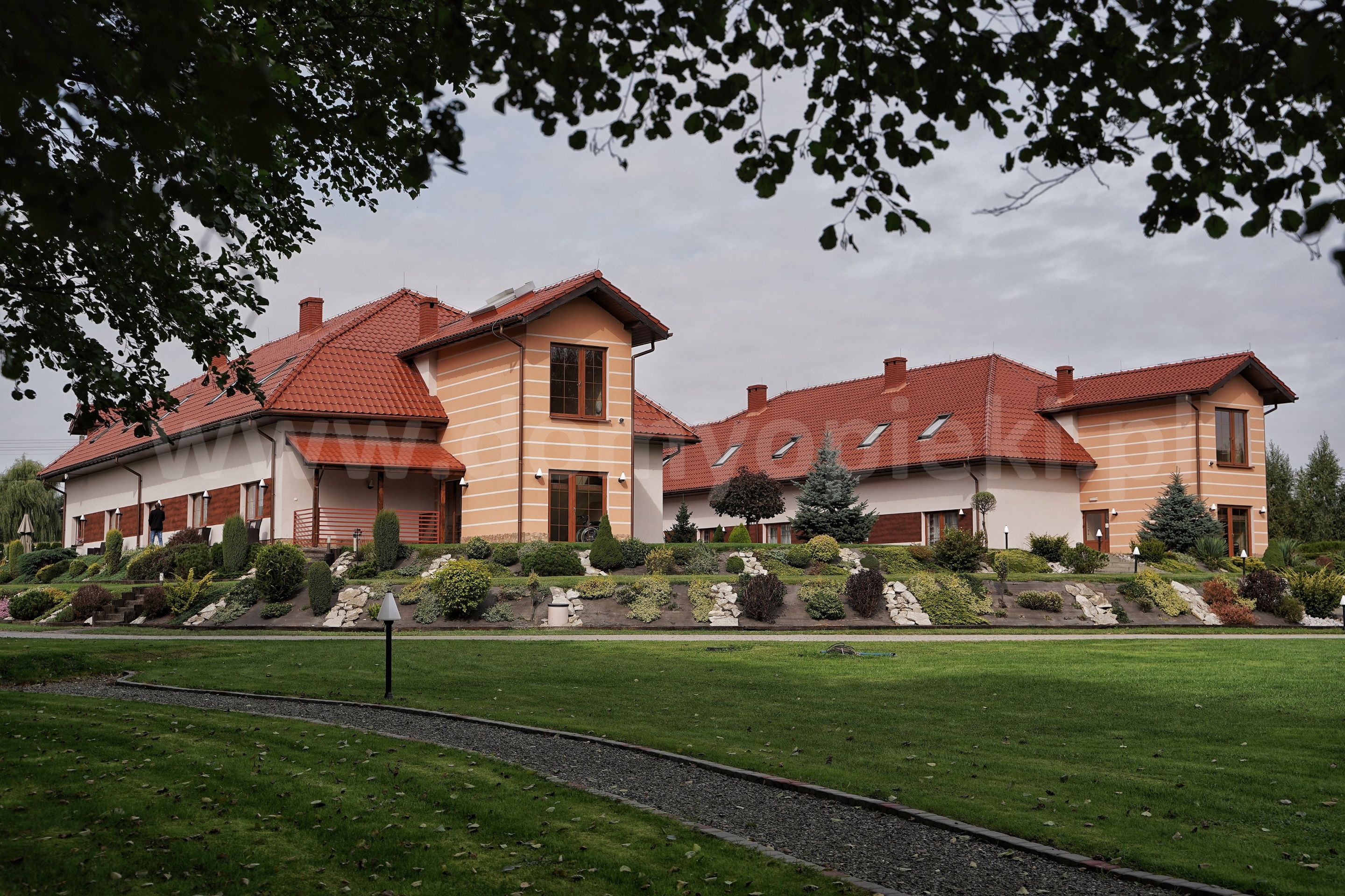 Udogodnienia: pokoje 1-, 2-, 3-osobowe z łazienką i przywoławczą instalacją, TV, telefon, ogród, usługi pralnicze, krawieckie i fryzjerskie