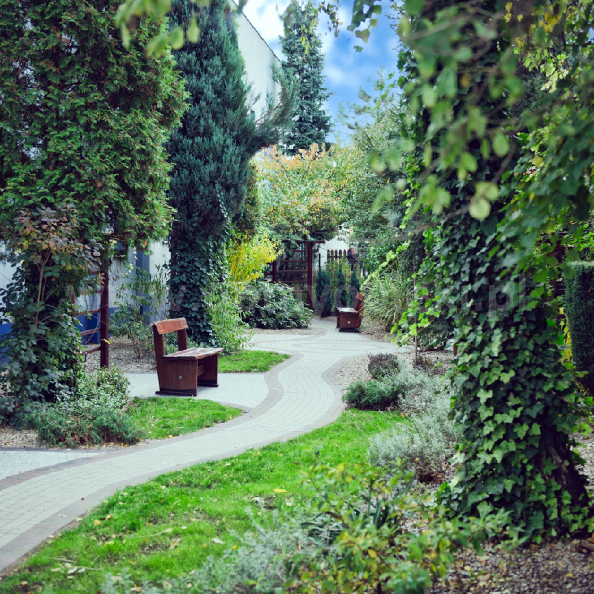 Ośrodek dysponuje również bezpiecznym terenem spacerowym przystosowanym dla niepełnosprawnych, co zapewnia możliwość codziennego kontaktu z przyrodą. Pięknie zagospodarowany i zadbany teren zielony z altanka, patio, alejkami i licznymi ławeczkami.