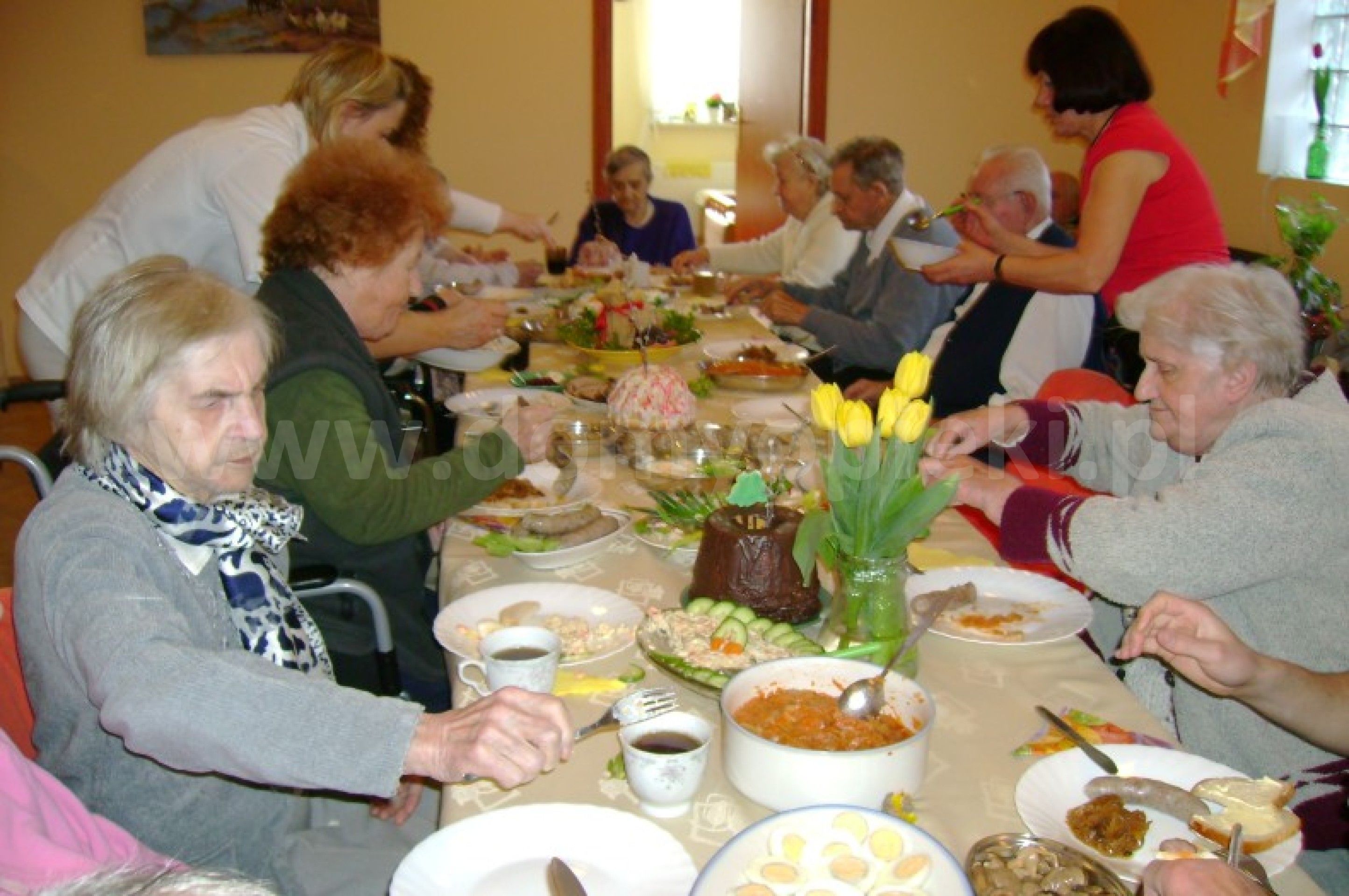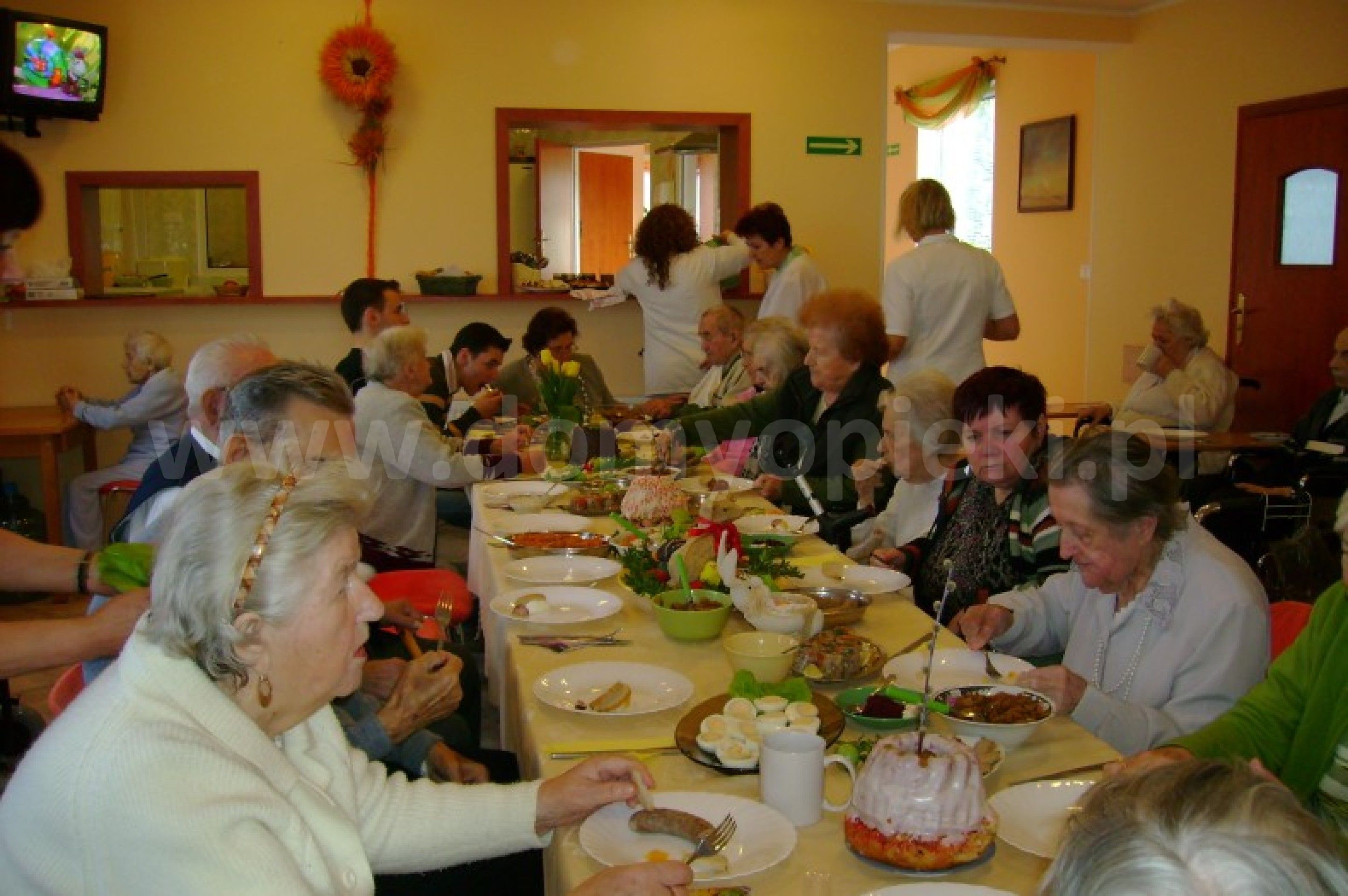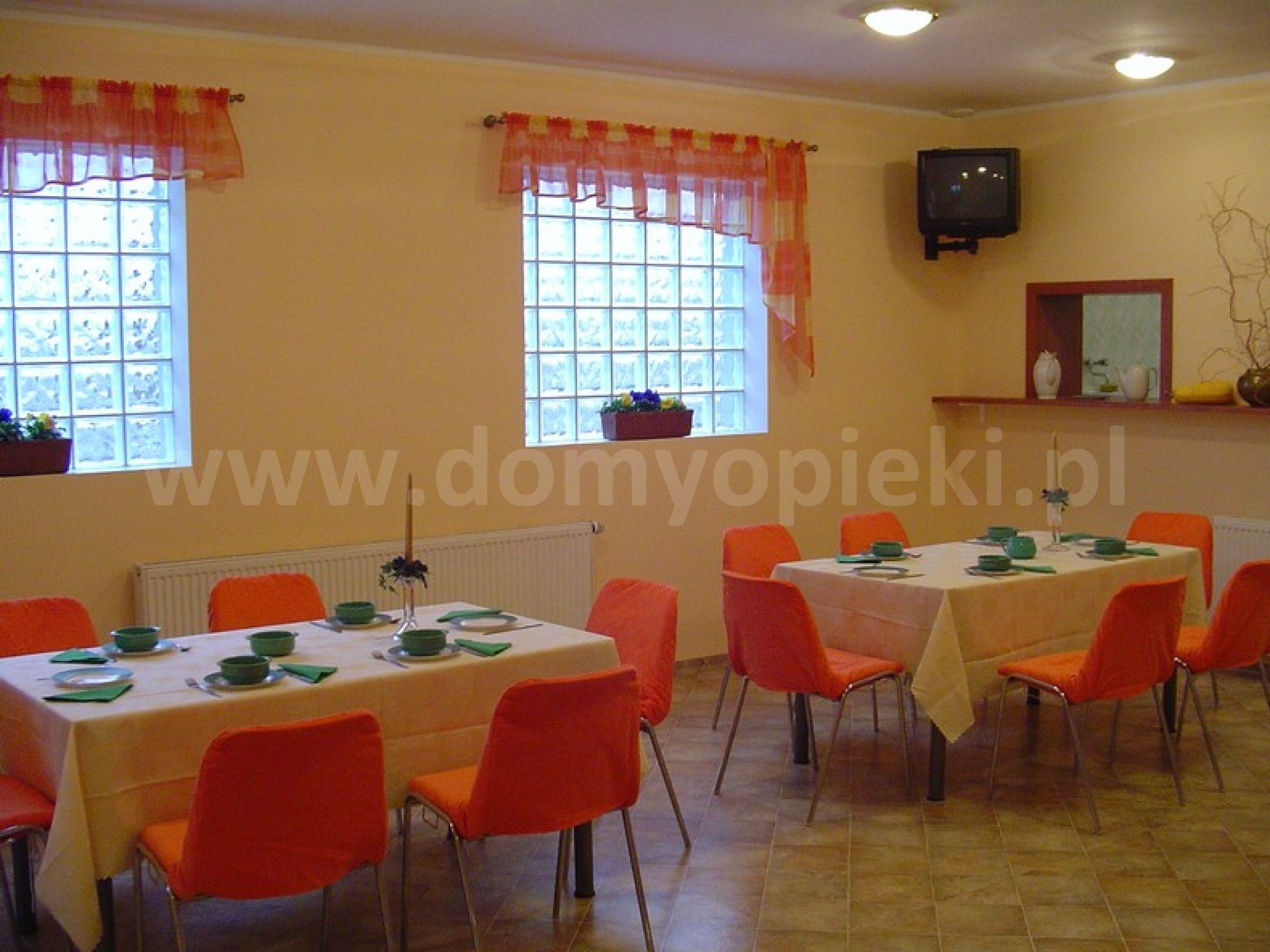 Udogodnienia: budynek bez barier architektonicznych, domowa kuchnia, 5 posiłków dziennie, program kulturalno‑oświatowy, opieka duszpasterska