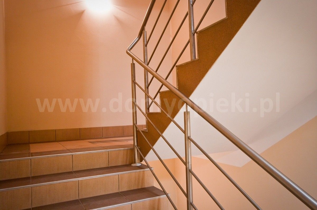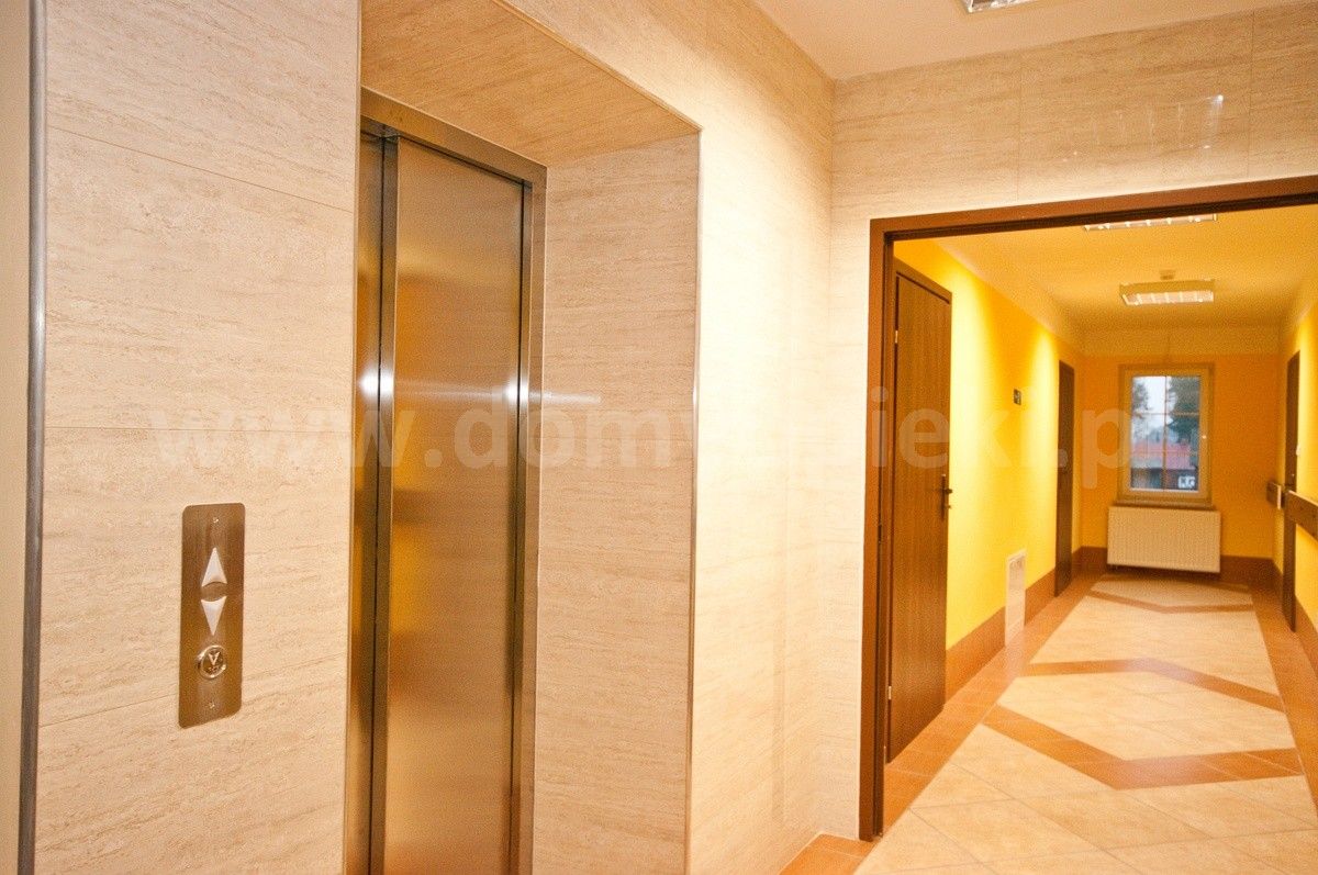 szeroka winda, podjazd do budynku, uchwyty w łazienkach, poręcze na korytarzach