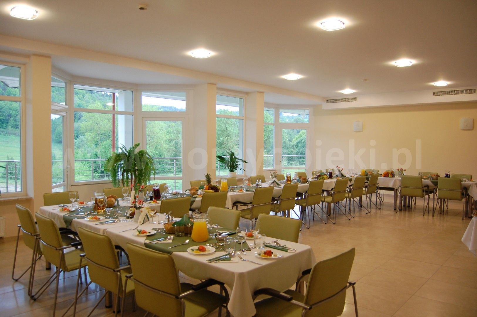 Pokoje można wyposażyć wg własnych upodobań, bądź korzystać z naszych mebli. - pięć posiłków dziennie dostosowane do potrzeb osób Starszych i ewentualnych indywidualnych diet (między innymi cukrzycowej, wrzodowej, bezglutenowej) przygotowywanych w oparciu o zalecenia dietetyka. Staramy się dostosować do osobistych wymagań i przyzwyczajeń naszych Mieszkańców.