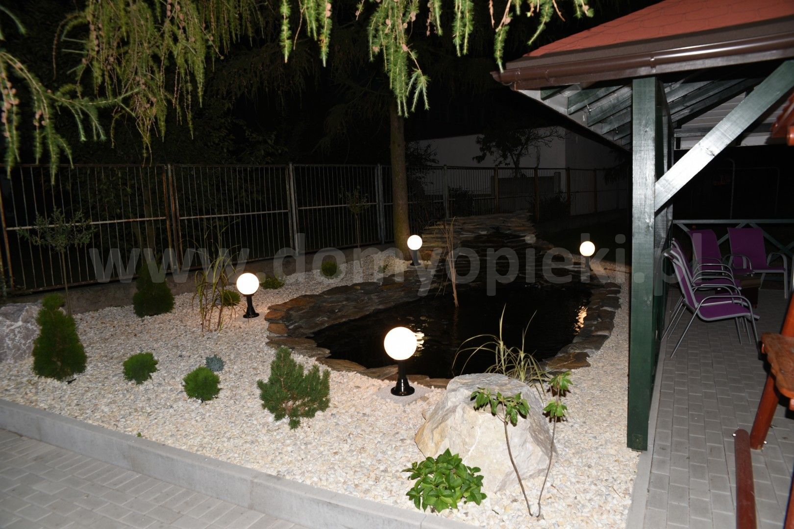 Przy obiekcie znajduje się ogrodzony 35 arowy teren zielony z zagospodarowanym ogrodem.