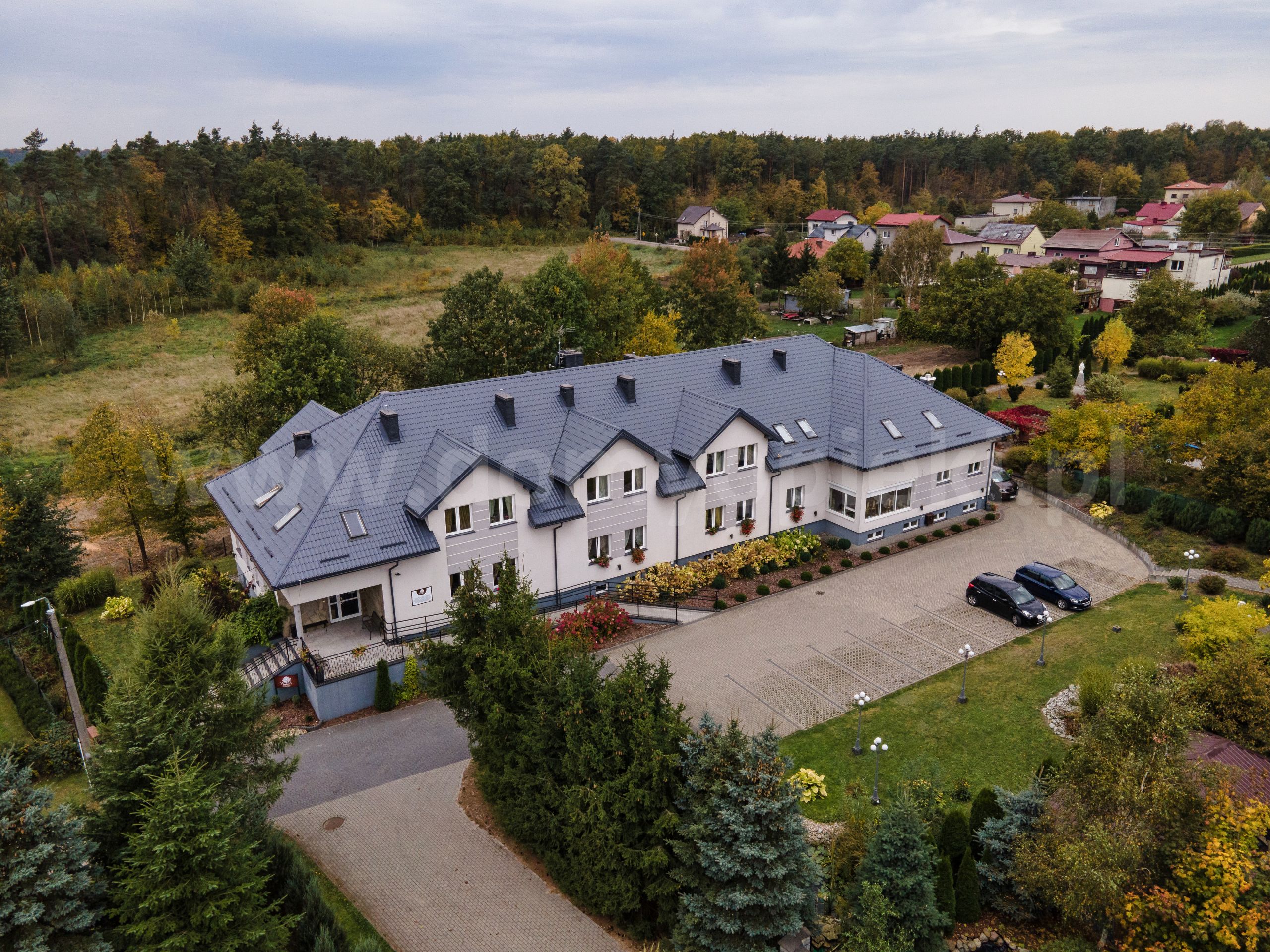 Udogodnienia: systemy alarmowe i przywoławcze, monitoring, podjazdy dla osób niepełnosprawnych, winda, kaplica, ogród z utwardzonymi ścieżkami