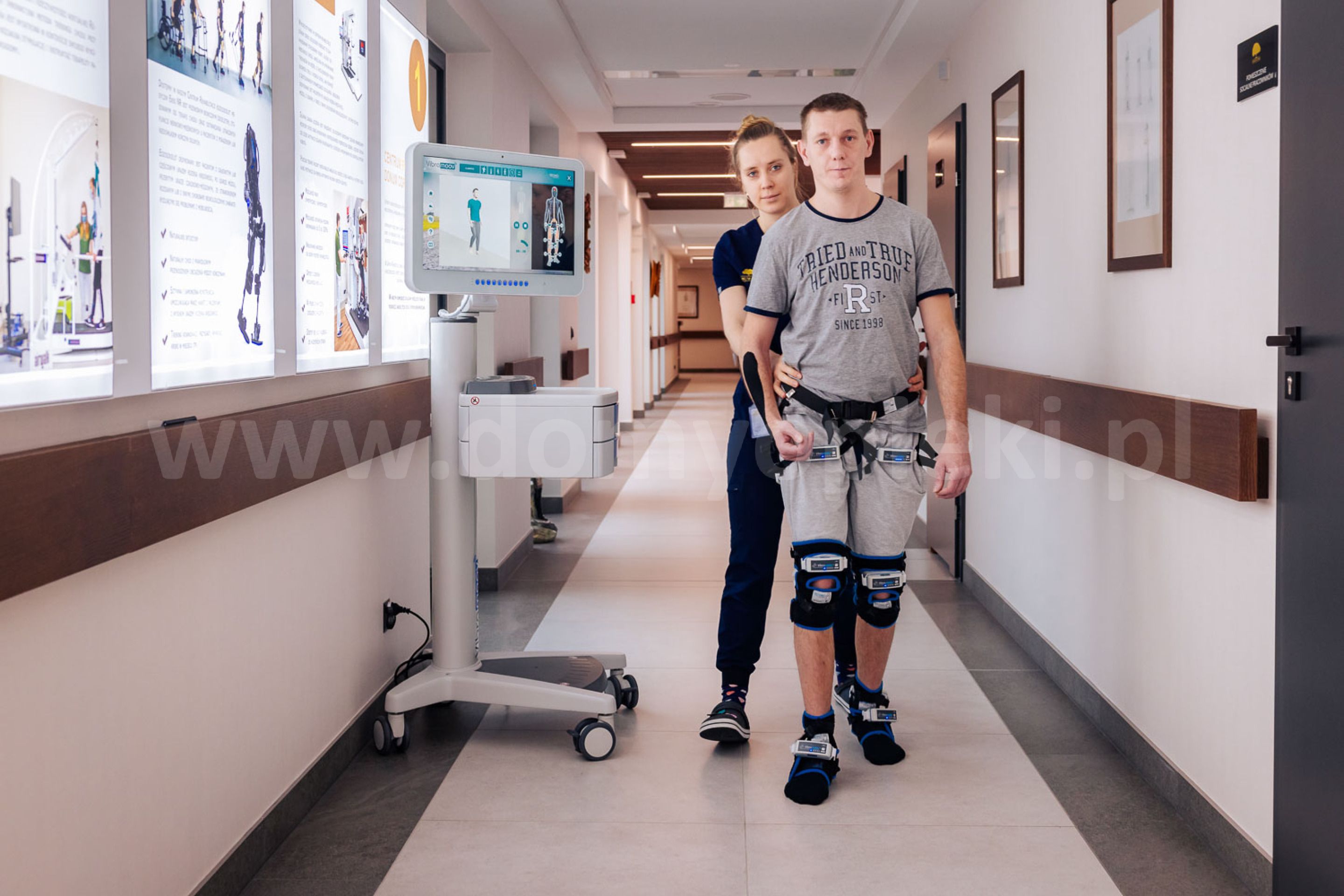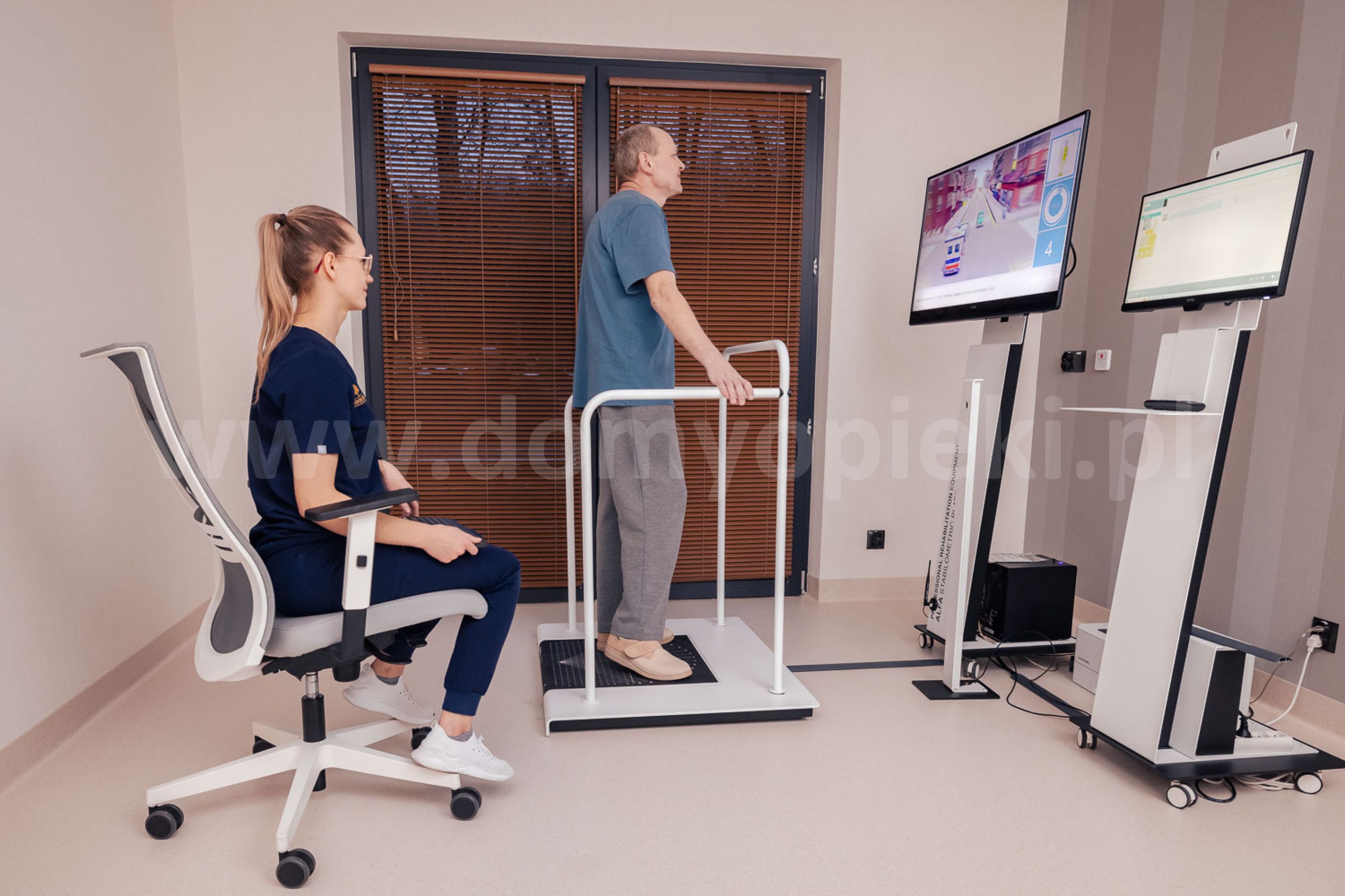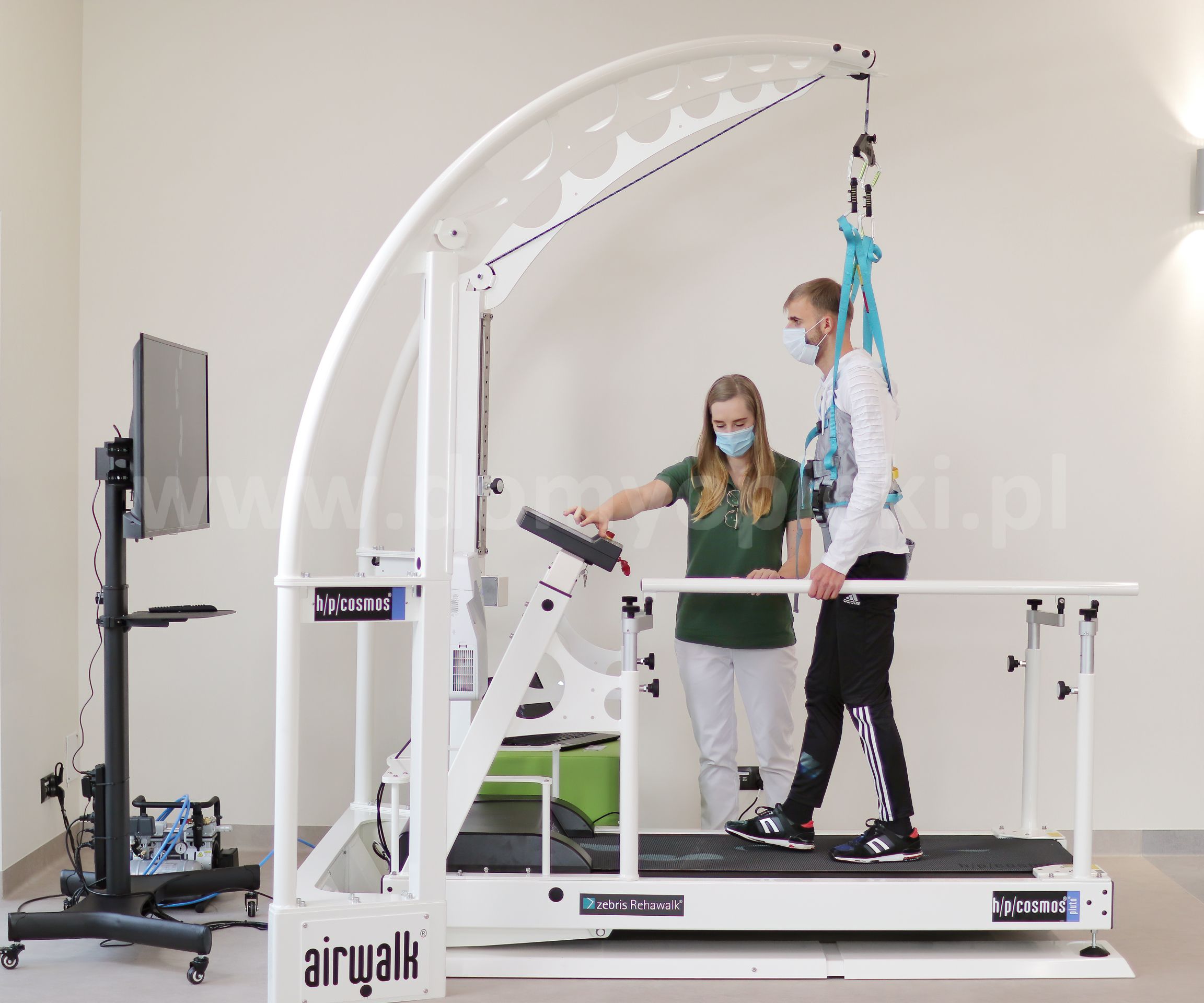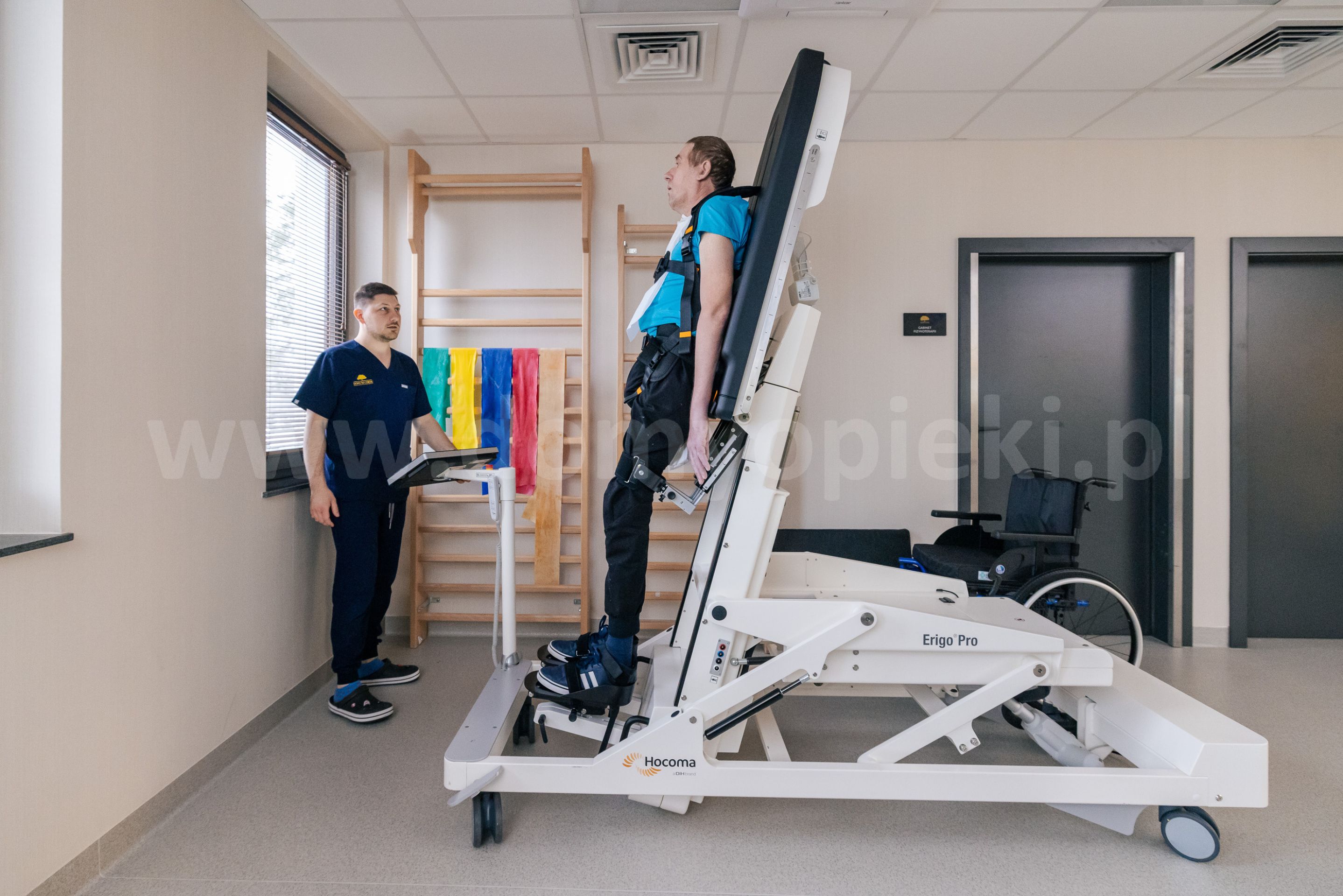 Dodatkowo najwcześniejszy proces rehabilitacji Pacjentów w stanie cięzkim jest realizowany w procesie pionizacji Pacjenta za pomocą wykorzystania stołu pionizacyjnego z funkcją kroczenia ERIGO PRO oraz stołu pionizacyjnego z funkcją kroczenia BTS Anymov.