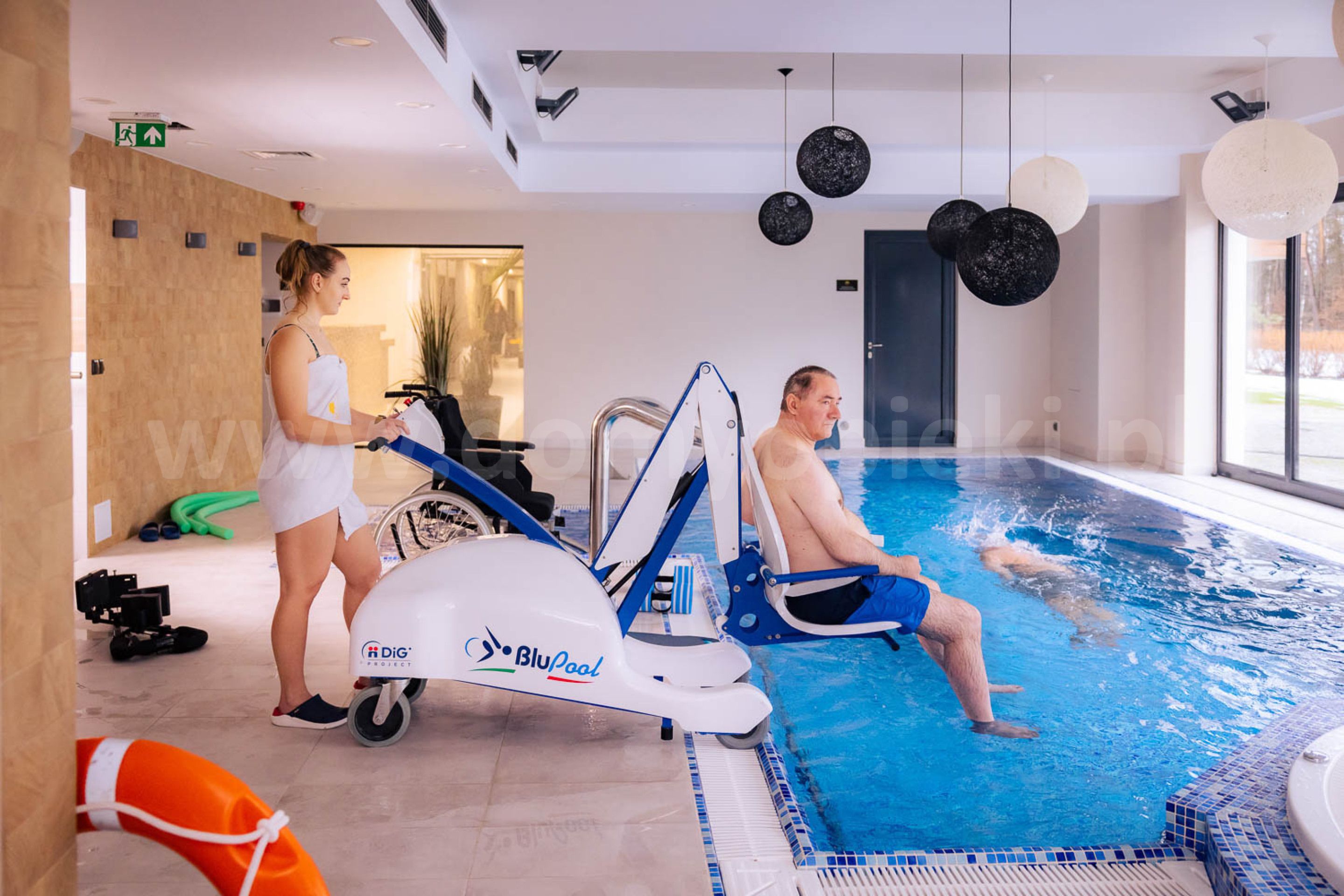 Ośrodek posiada również możliwość przeprowadzenia rehabilitacji w wodzie,w strefie basenu, wspomaga to całościowy proces usprawniania fizycznego w zaburzeniach neurologicznych, w schorzeniach mięśniowo-szkieletowych, a także po przebytych operacjach czy urazach.