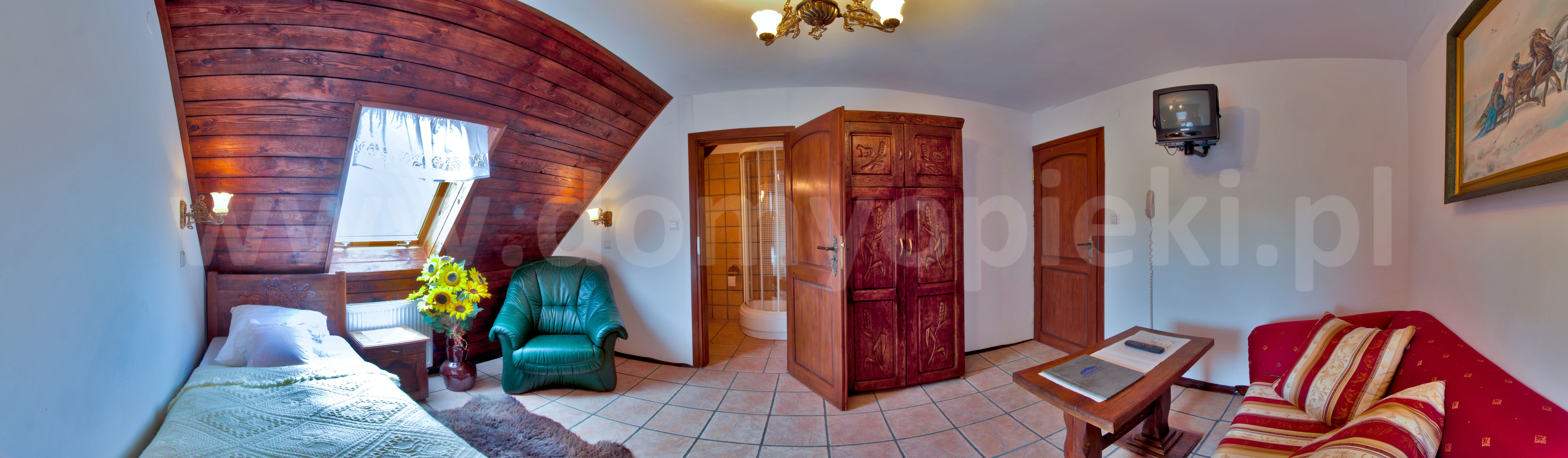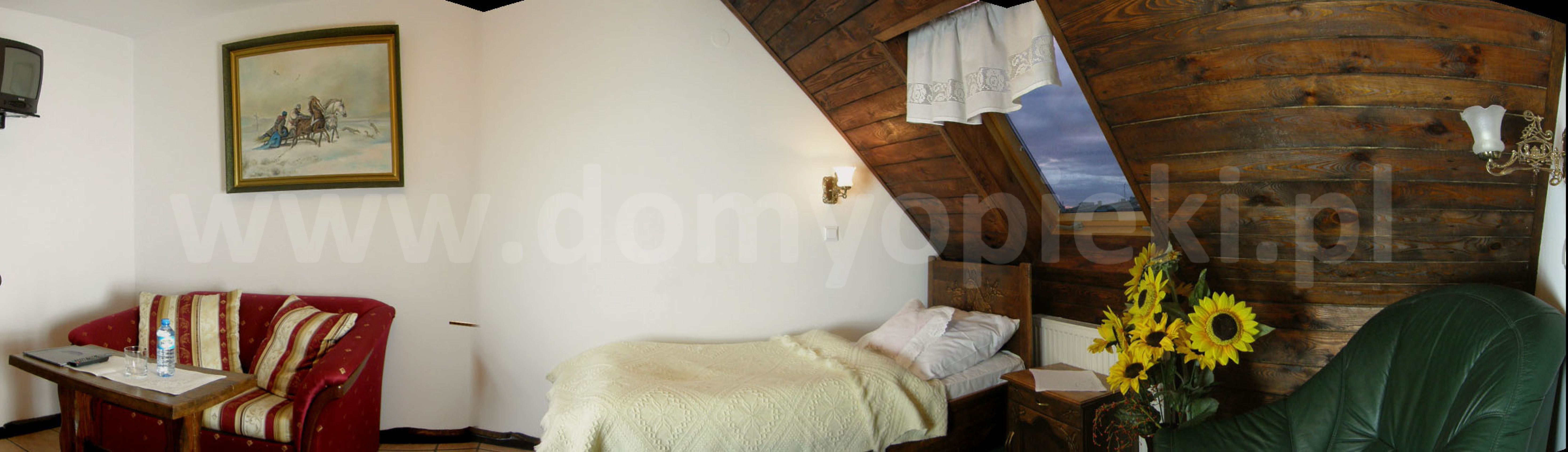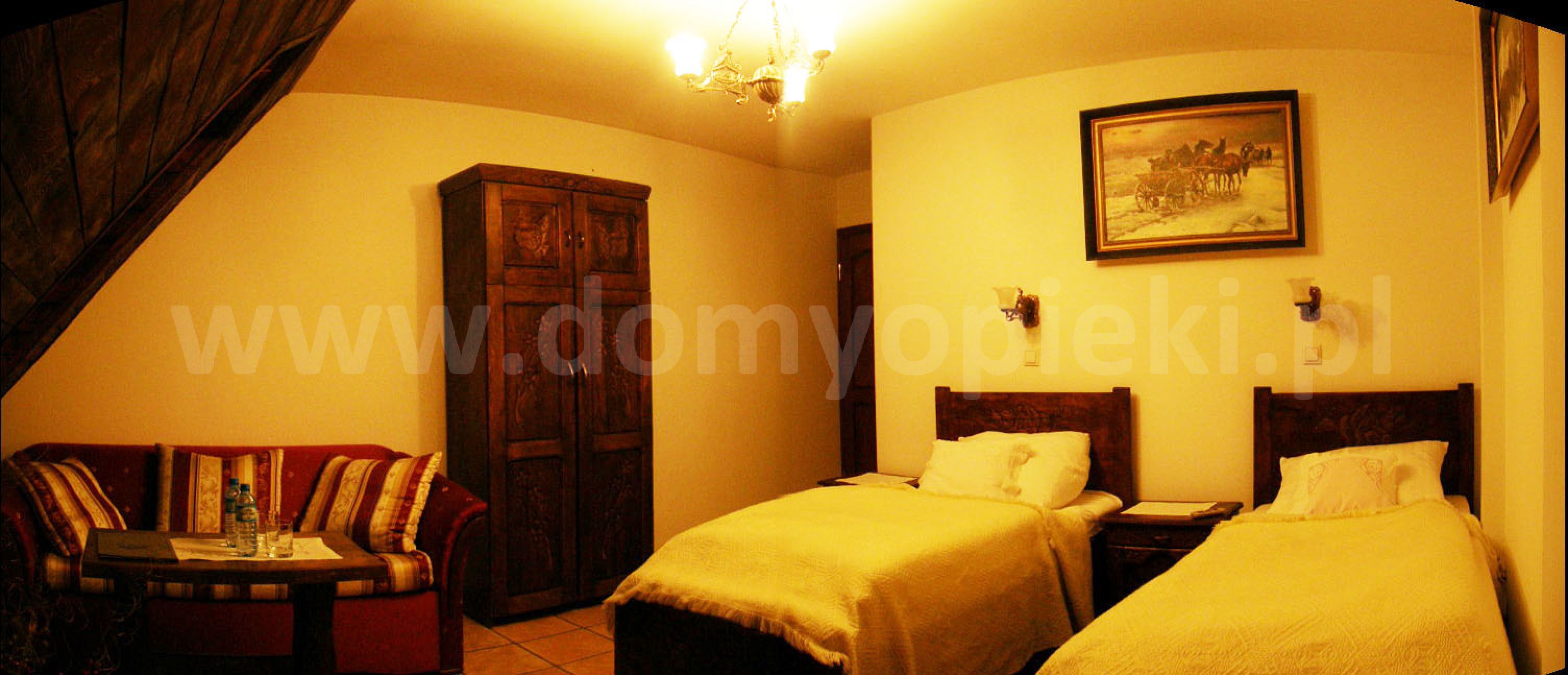 Istniejący obiekt ma powierzchnię 800 m2 w tym sala pobytu dziennego 200 m2. Opieką całodobową możemy objąć 40 osobą, które do swojej dyspozycji posiadają 18 pokoi.