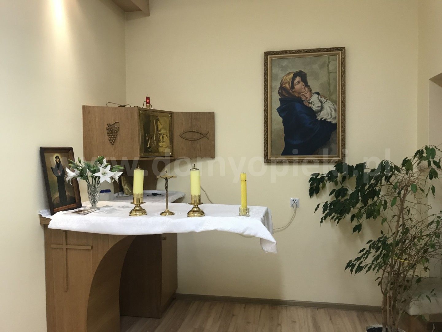 Udogodnienia: pokoje 1-/2-/3-osobowe z węzłem sanitarnym i instalacją przywoławczą, dostęp do Internetu, stołówka, własna kuchnia, kaplica, monitoring, sprzęt rehabilitacyjny i medyczny