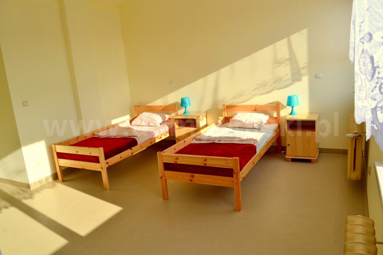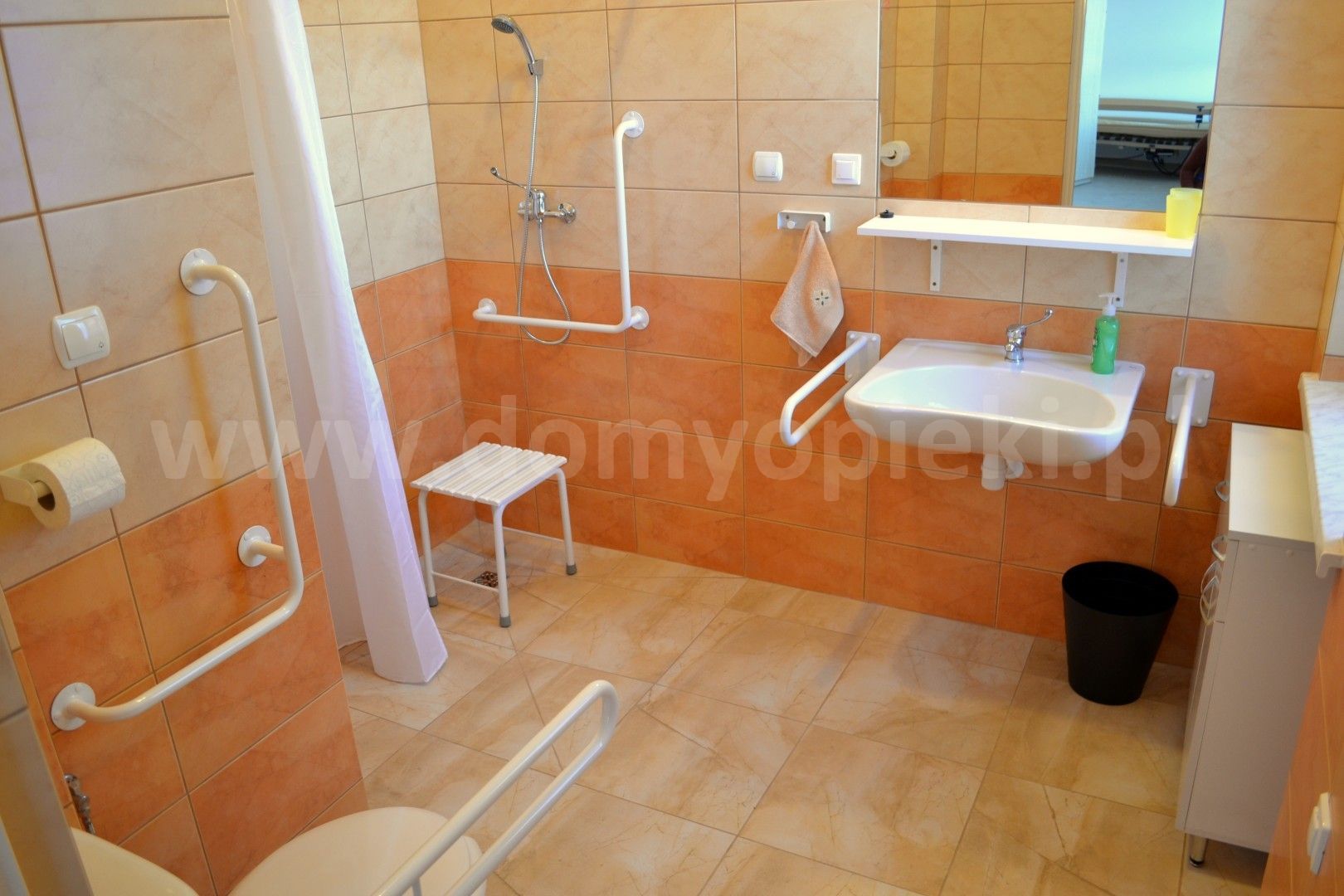 - pokoje 1-, 2- i 3-osobowe z łazienkami wyposażonymi w urządzenia ułatwiające poruszanie się osobom nie w pełni sprawnym, system przywoływawczy, TV, Internet,
