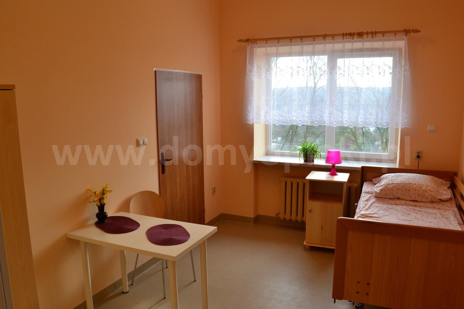 - jadalnia, przestrzenne korytarze i hole, pokój dzienny, gościnny, gabinet lekarski i zabiegowy, salę rehabilitacyjną, parking dla odwiedzających,