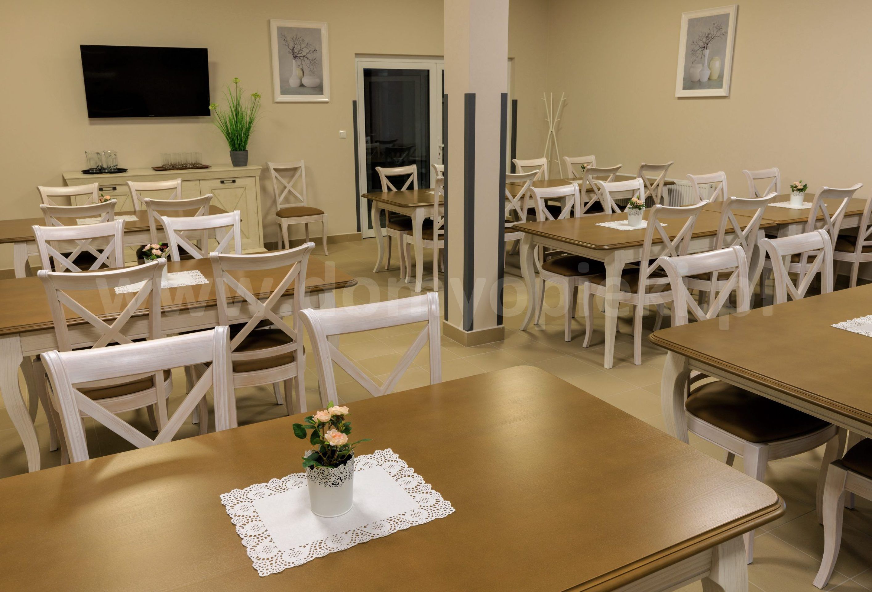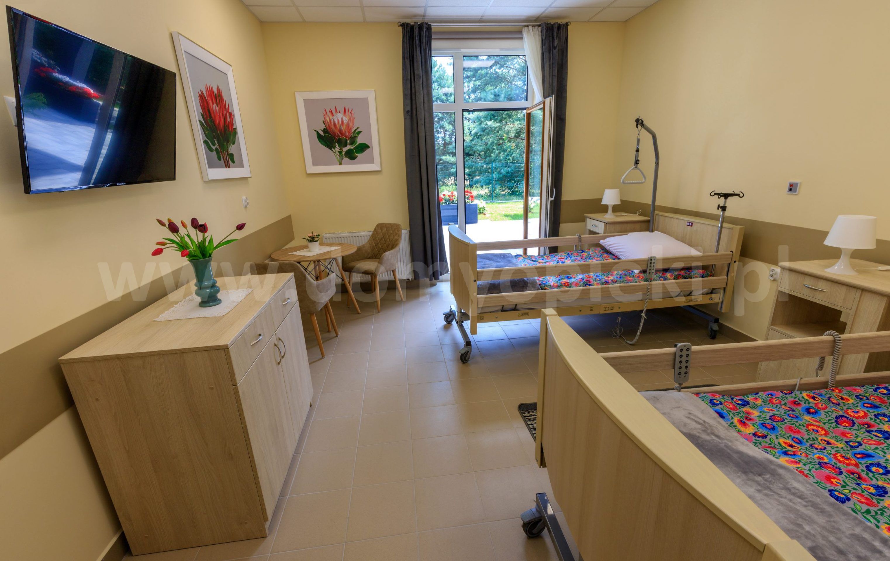 Udogodnienia: pokoje 1/2/3-osobowe z łazienką i TV, instalacja przywoławcza, winda, bezpłatna rehabilitacja, bezpłatna opieka stomatologiczna, ogród i taras