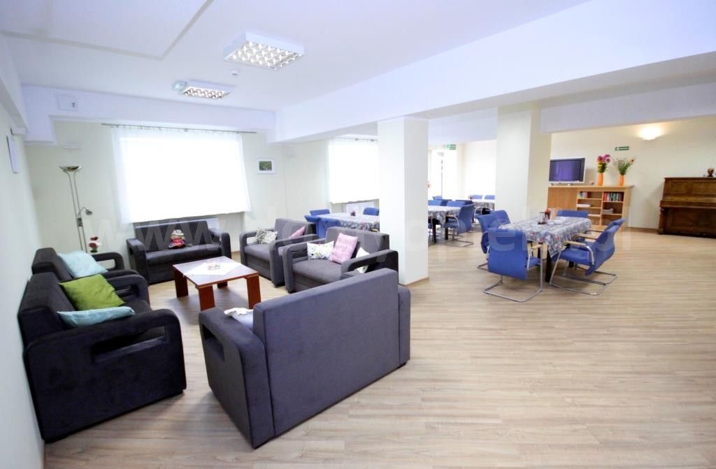 Do dyspozycji naszych pensjonariuszy jest też przestronna jadalnia, pokój wypoczynkowy, świetlica, trzy pokoje na potrzeby terapii zajęciowych oraz pokój gościnny.