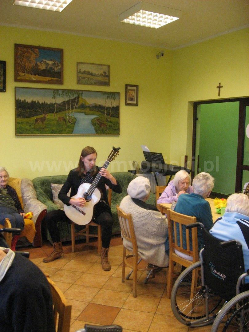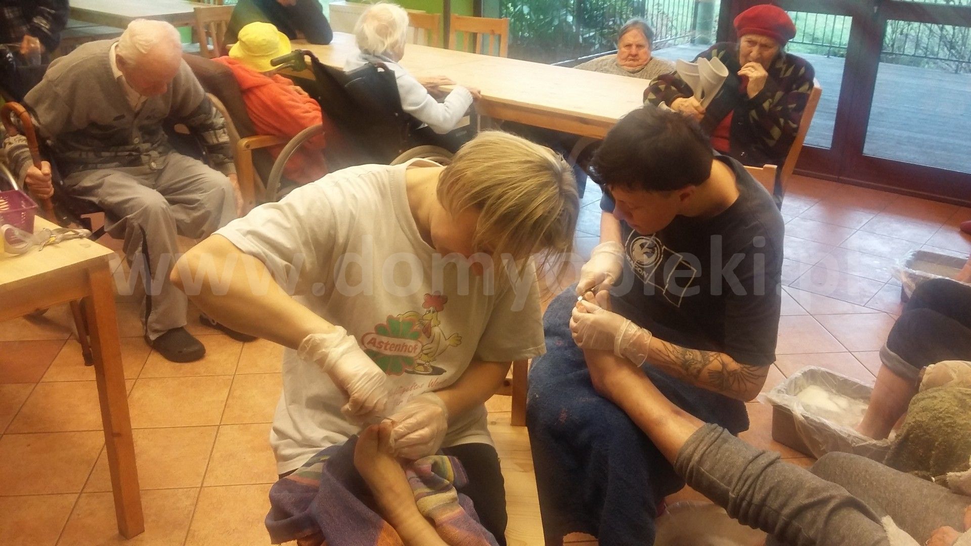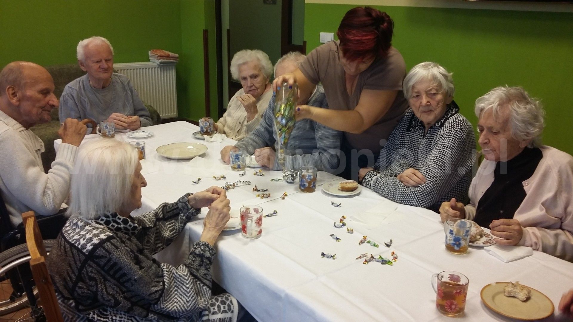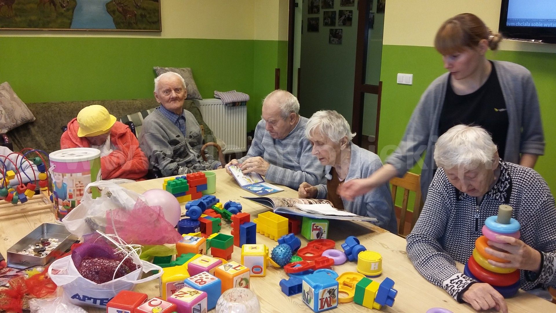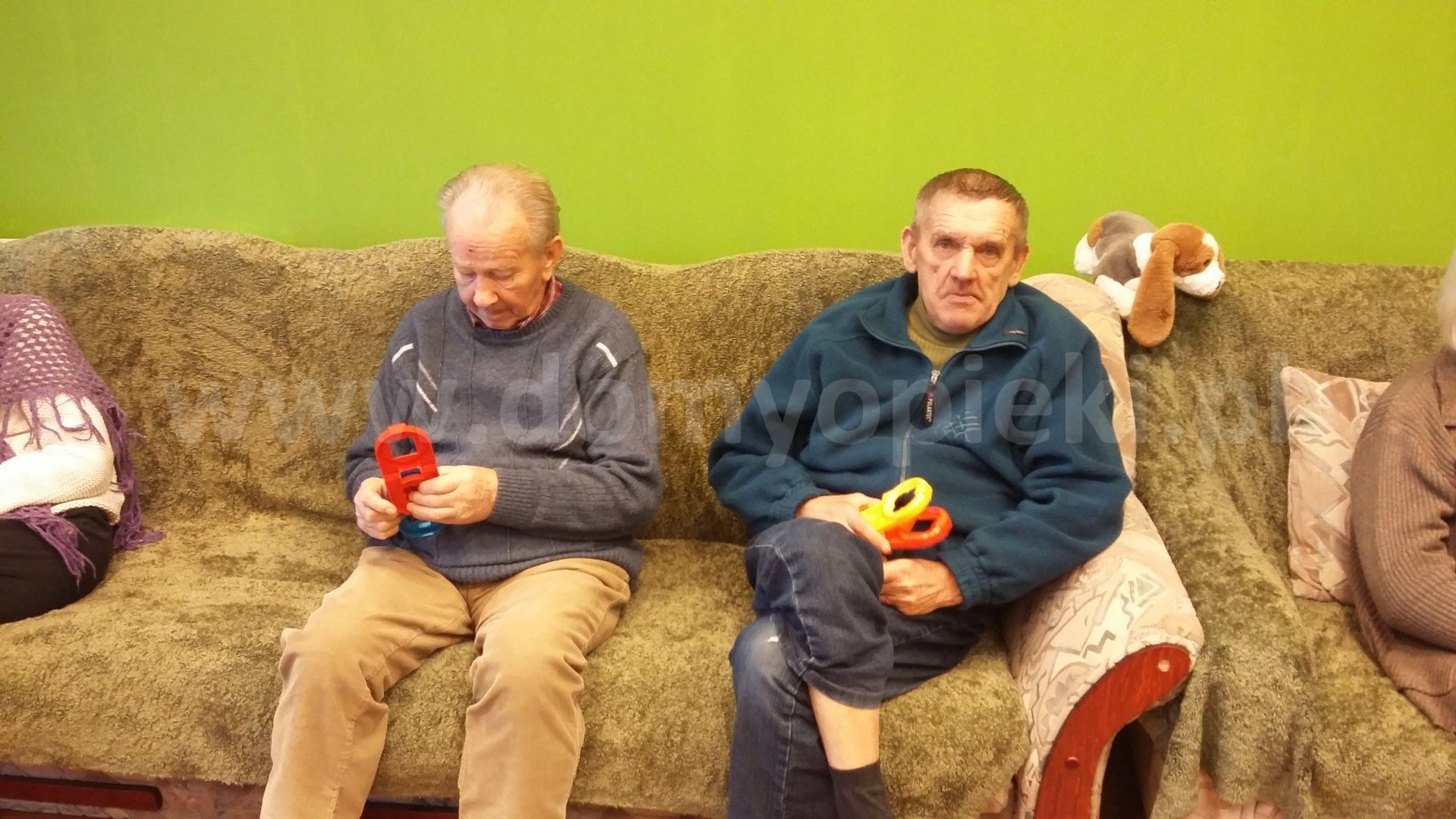 Naszym domownikom zapewniamy 24 - godzinną opiekę wykwalifikowanego personelu oraz opiekę medyczną. Do ich dyspozycji pozostają pielęgniarki oraz opiekunki. Specjalizujemy się w opiece nad osobami cierpiącymi na demencję starczą i chorobę alzheimera. Mgr fizjoterapii prowadzi rehabilitację grupową jak również indywidualną wg potrzeby, zaś terapeuta zajęciowy czuwa aby nikomu się u nas nie nudziło. Podopieczni mają do wyboru takie rodzaje terapii zajęciowej jak: taniec, gimnastyka, śpiew, gry planszowe, robótki ręczne, istnieje również możliwość uprawy ogródka.