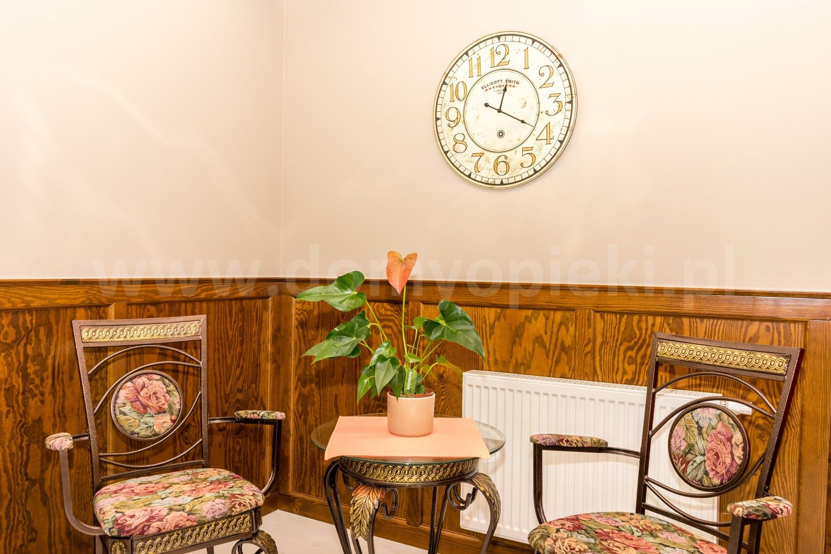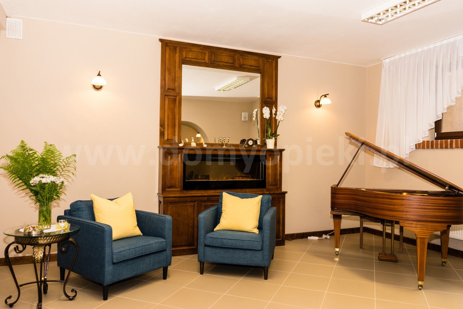 Do dyspozycji mieszkańców oddajemy również kaplicę, w której regularnie odbywają się Msze Święte, bibliotekę wyposażoną w bogaty księgozbiór, sprzęt odtwarzający muzykę oraz kącik z dostępem do komputera oraz Internetu. Staramy się na bieżąco aktywizować naszych seniorów, dlatego dysponujemy salą do ćwiczeń oraz fizjoterapii, a także siłownią. Pięć dni w tygodniu odbywają się tam zajęcia rehabilitacyjne oraz gimnastyka, które pomagają pozostawać w dobrej kondycji fizycznej oraz zachować pogodę ducha. W saloniku piękności można skorzystać z usług fryzjerskich oraz kosmetycznych. Do nowo otwartej groty solnej zapraszamy wszystkich, którzy pragną pobyć w dobroczynnym mikroklimacie, zbliżonym do tego, jaki jest nad morzem. Czyste i wysoko zjonizowane powietrze korzystnie wpływa na układ oddechowy i funkcjonowanie organizmu. Do pokoju kominkowego zapraszamy na wspólne świętowanie różnych uroczystości, a także koncerty w wykonaniu dzieci i wnuków naszych pensjonariuszy.