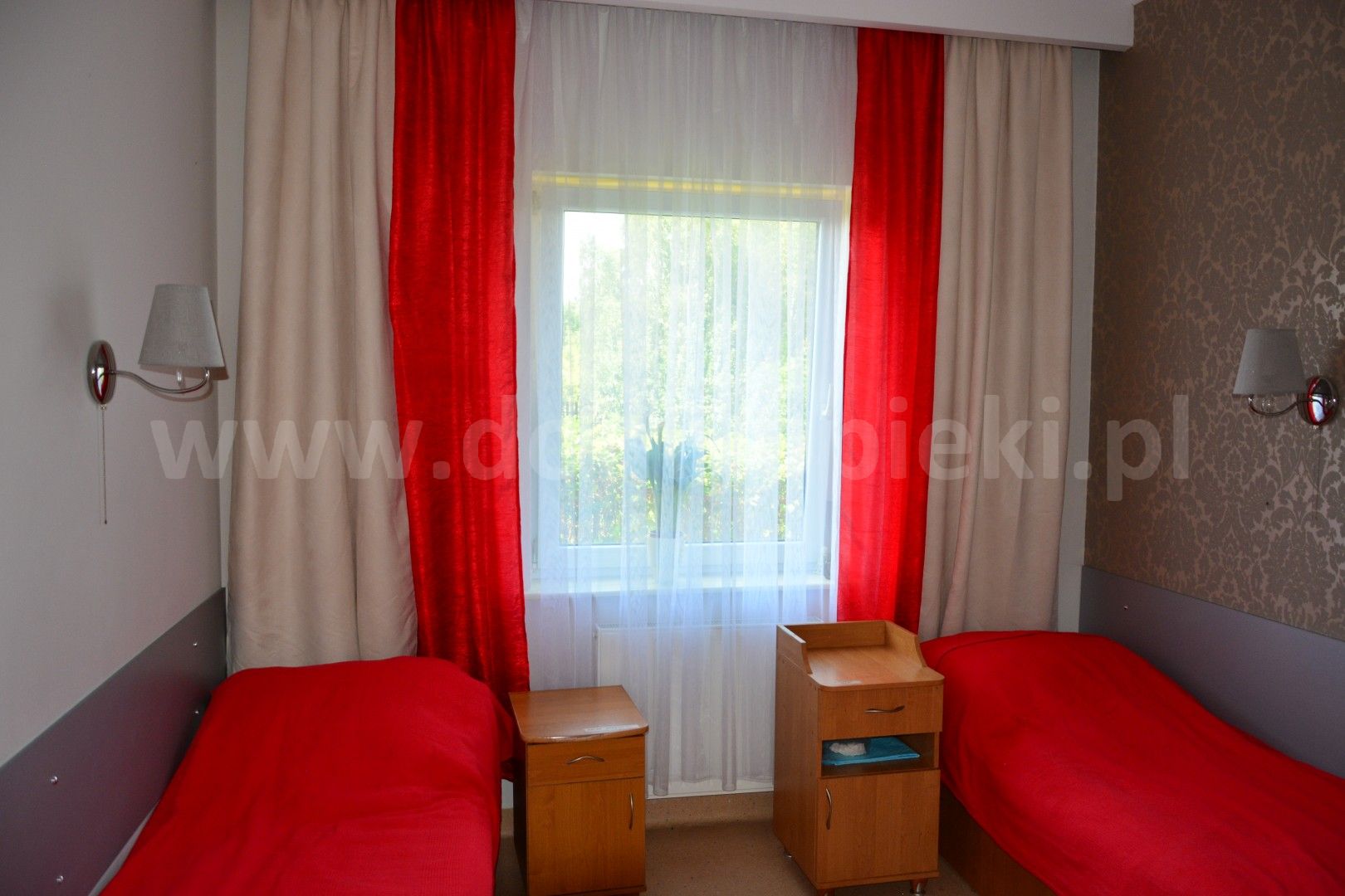Placówka dysponuje pokojami jedno- i dwuosobowymi oraz dużym ogrodem; warunki pobytu obejmują stałą opiekę pielęgniarską i wsparcie terapeutyczne.