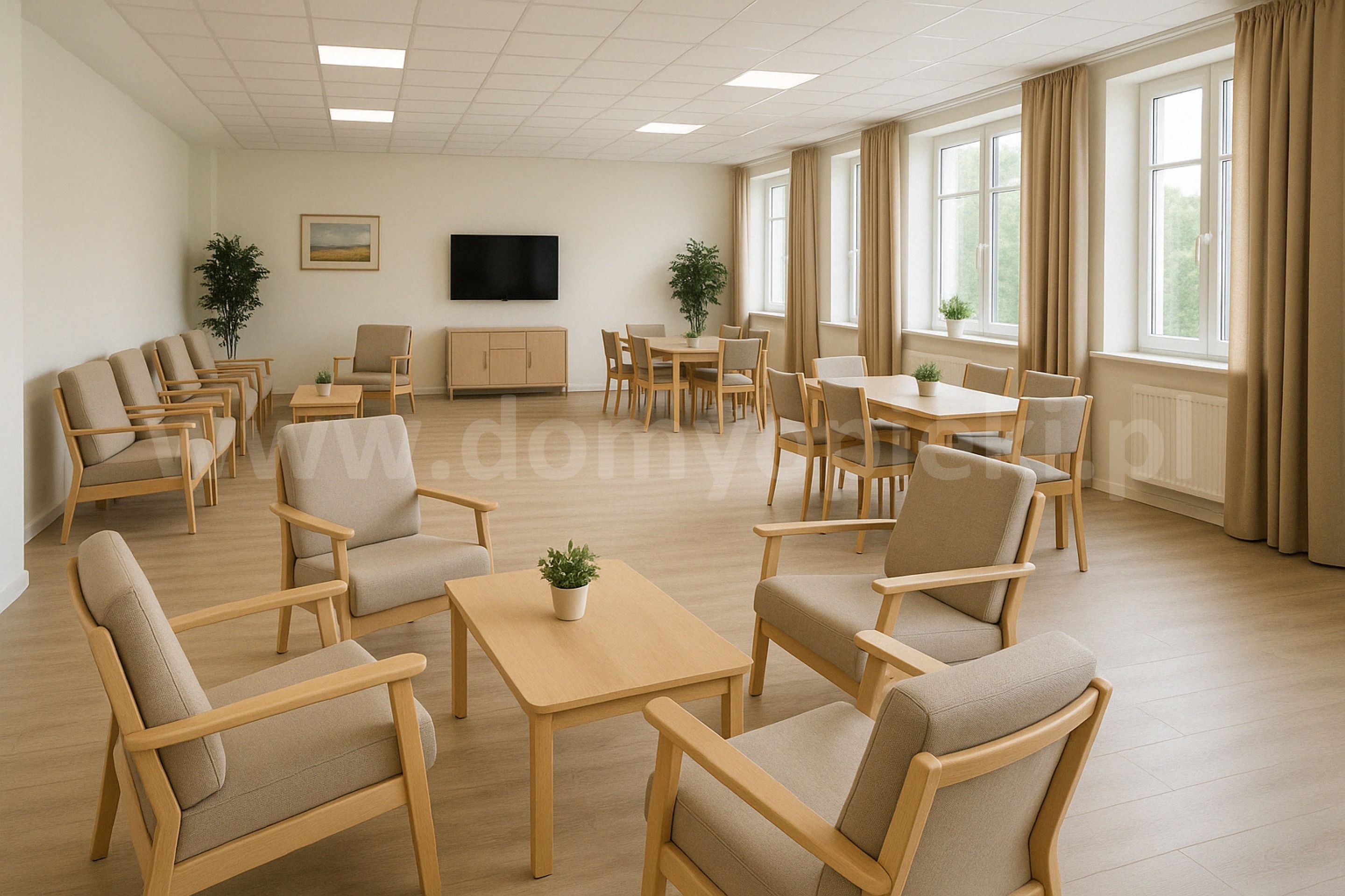 Ośrodek oferuje 80 miejsc dla pensjonariuszy, zapewniając całodobową opiekę w komfortowych warunkach.